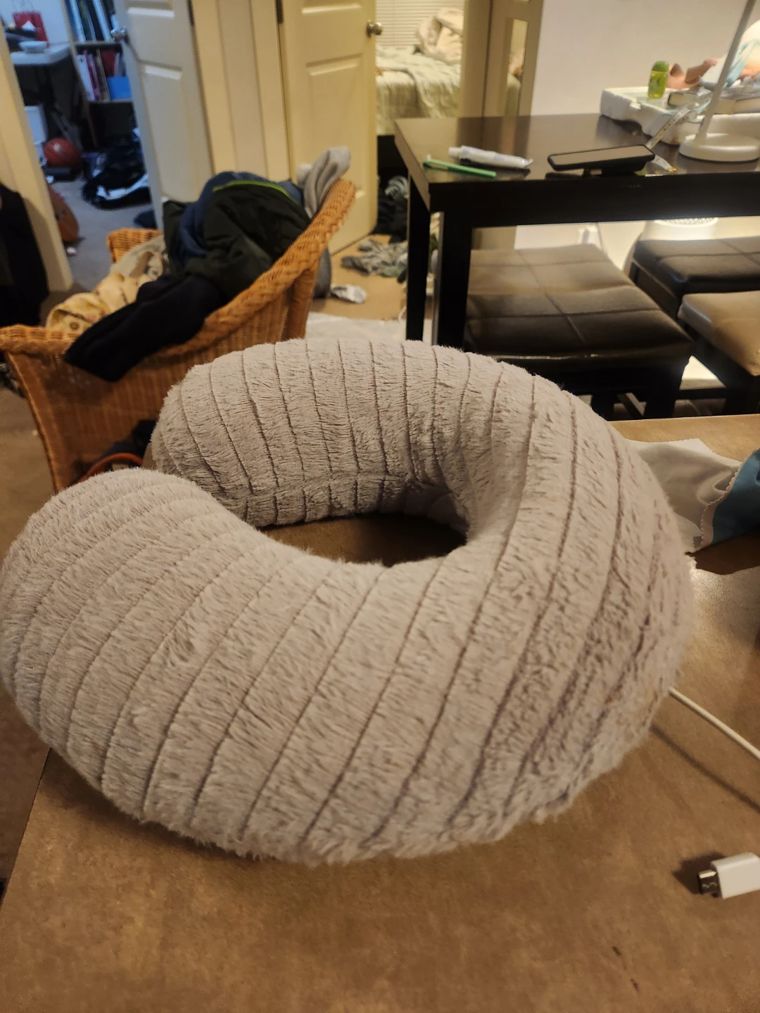 This plush neck pillow by Silver One At Home is super soft and cozy. Great for travel or relaxing! Very lightly used (one short flight)