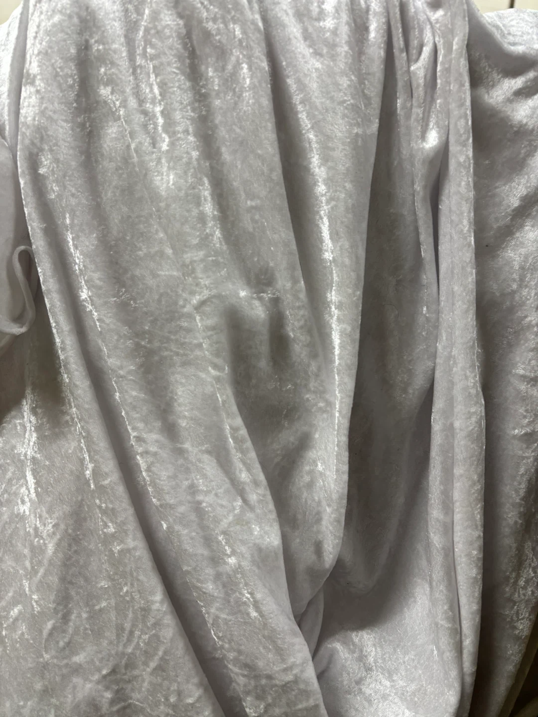 Here's a white velvet drape/backdrop curtain, perfect for adding a touch of elegance to any event or space. The soft velvet material creates a beautiful and luxurious look. It's in great condition and ready to be used for your next project or celebration