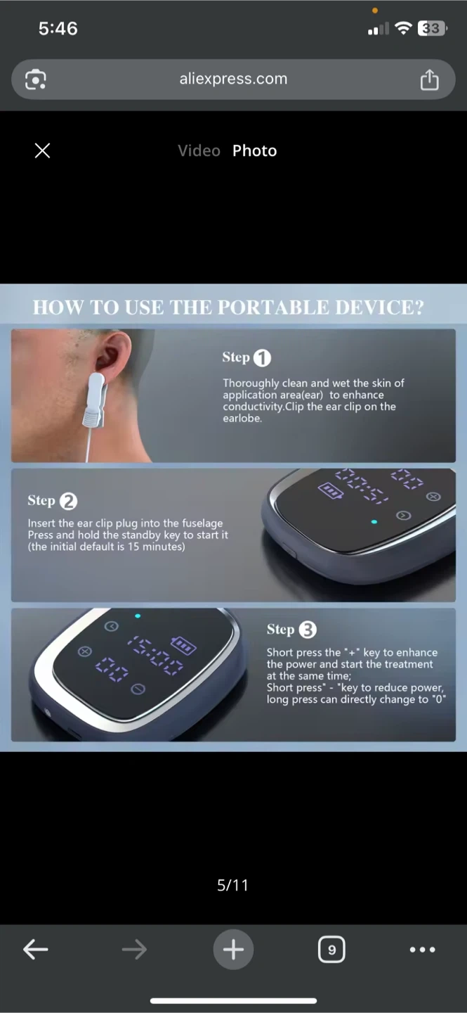 Features: It offers up to 35 adjustable intensity levels and has a default therapy time of 15 minutes. The device is portable, rechargeable via USB, and simple to operate