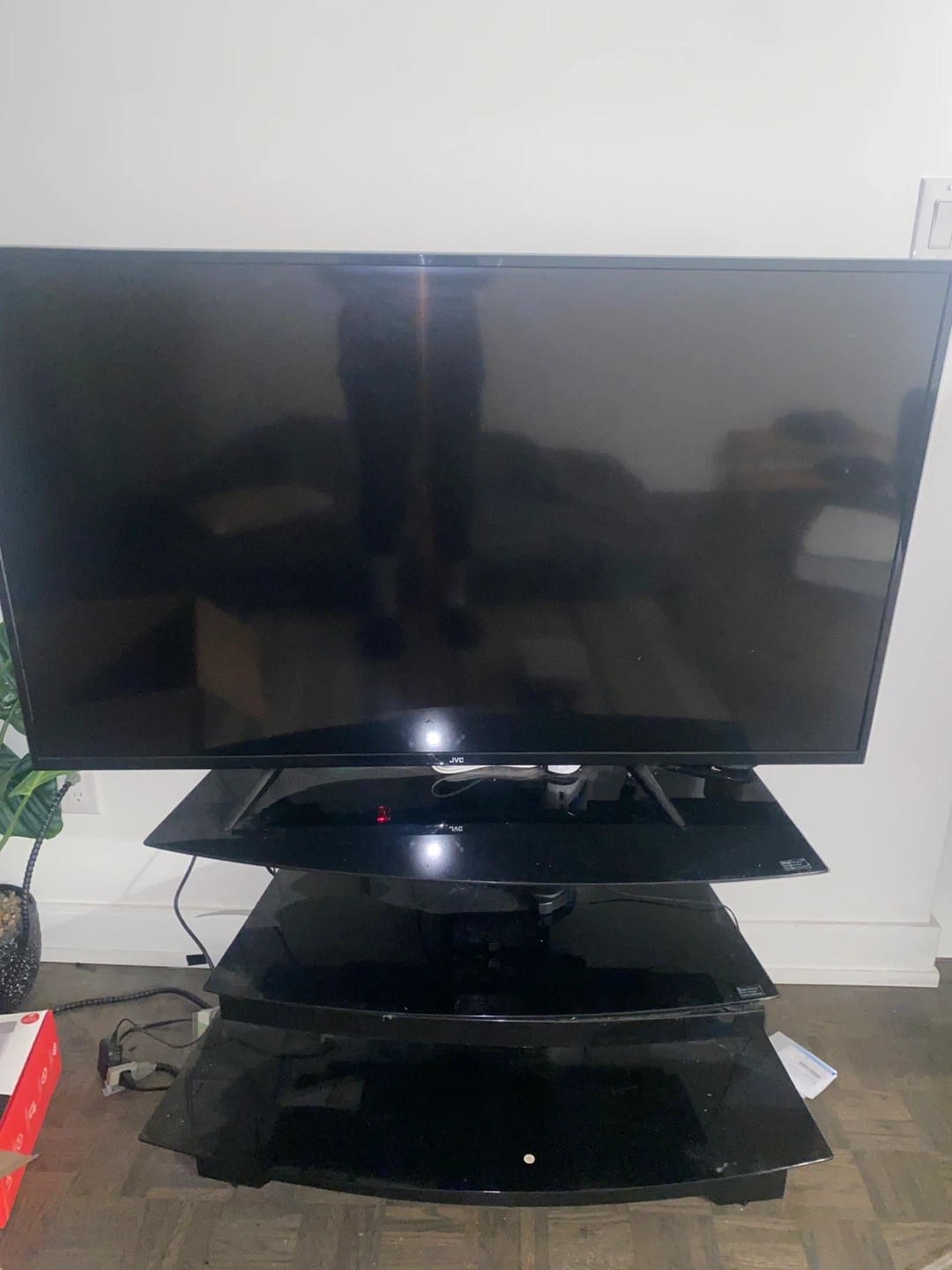 I’m selling this tv stand - it’s about 3ft tall , glass tops that can be rearranged. Tv not included