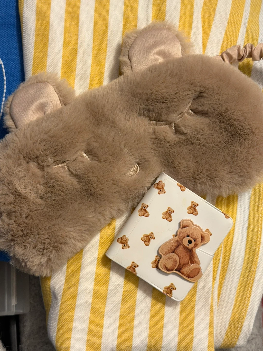 Fuzzy Bear Ear Sleep Mask with Mini Notebook