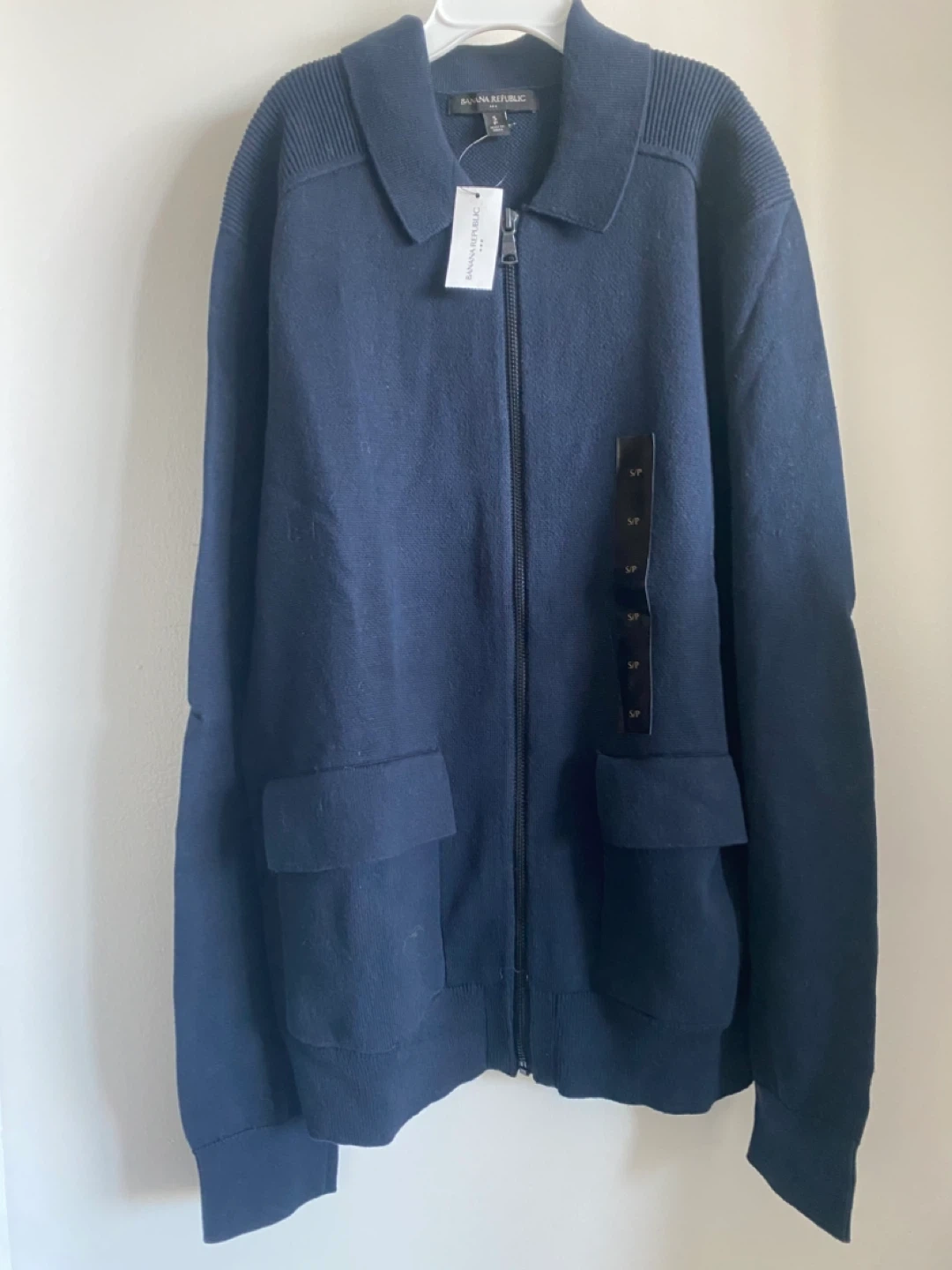 Classic and versatile navy zip-up cardigan from Banana Republic.