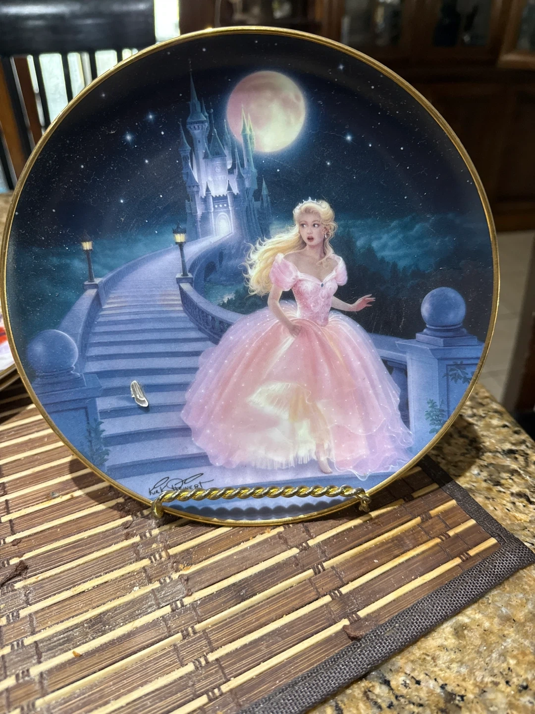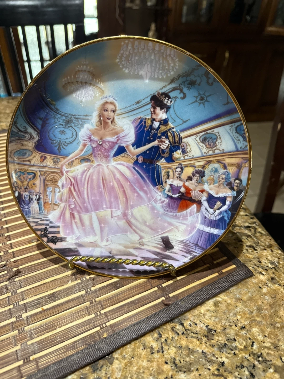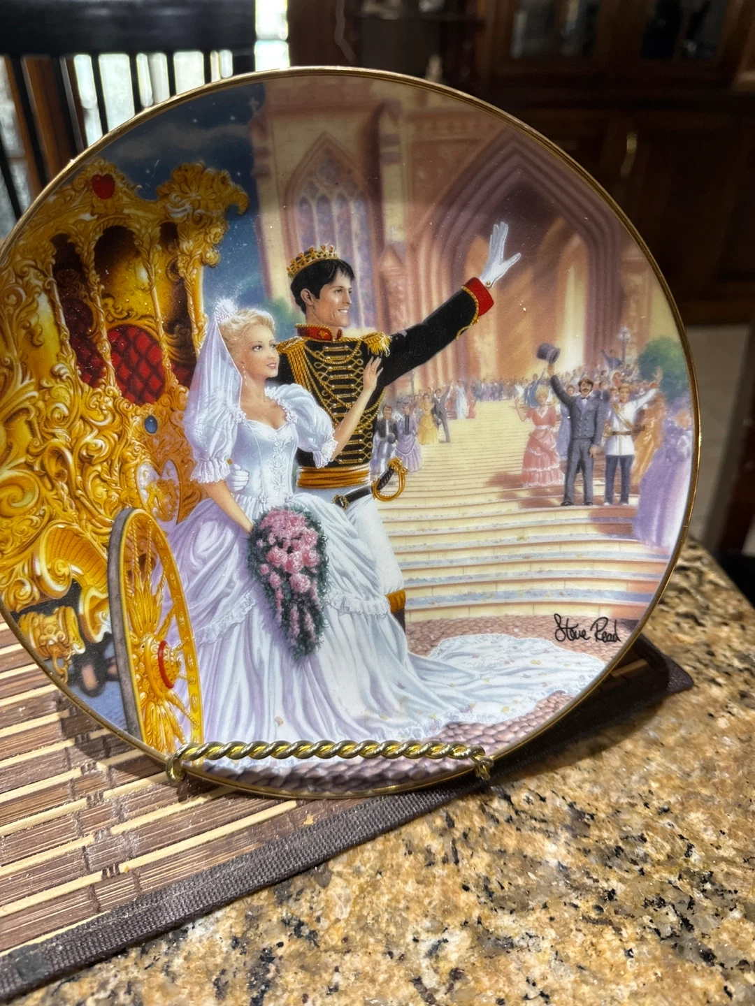 This is a decorative plate from the Steve Read collection. It features a fairytale scene with a prince and princess. The plate has a gold trim.
