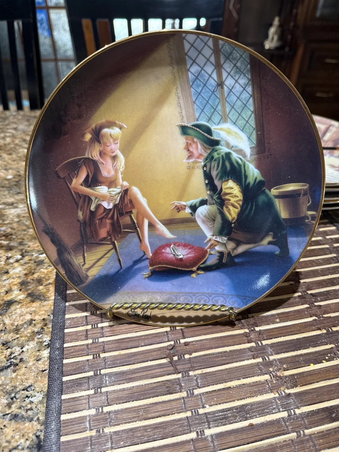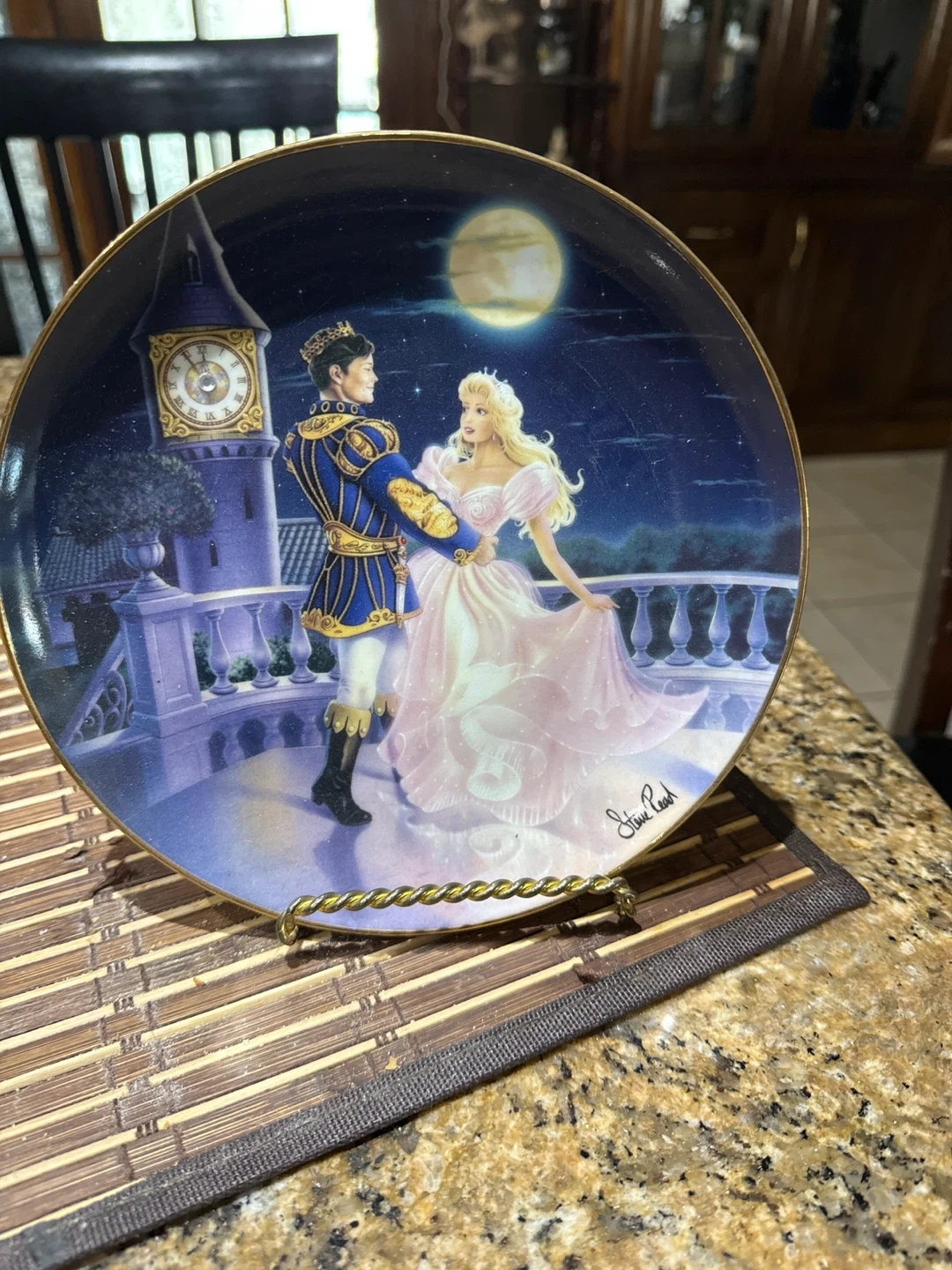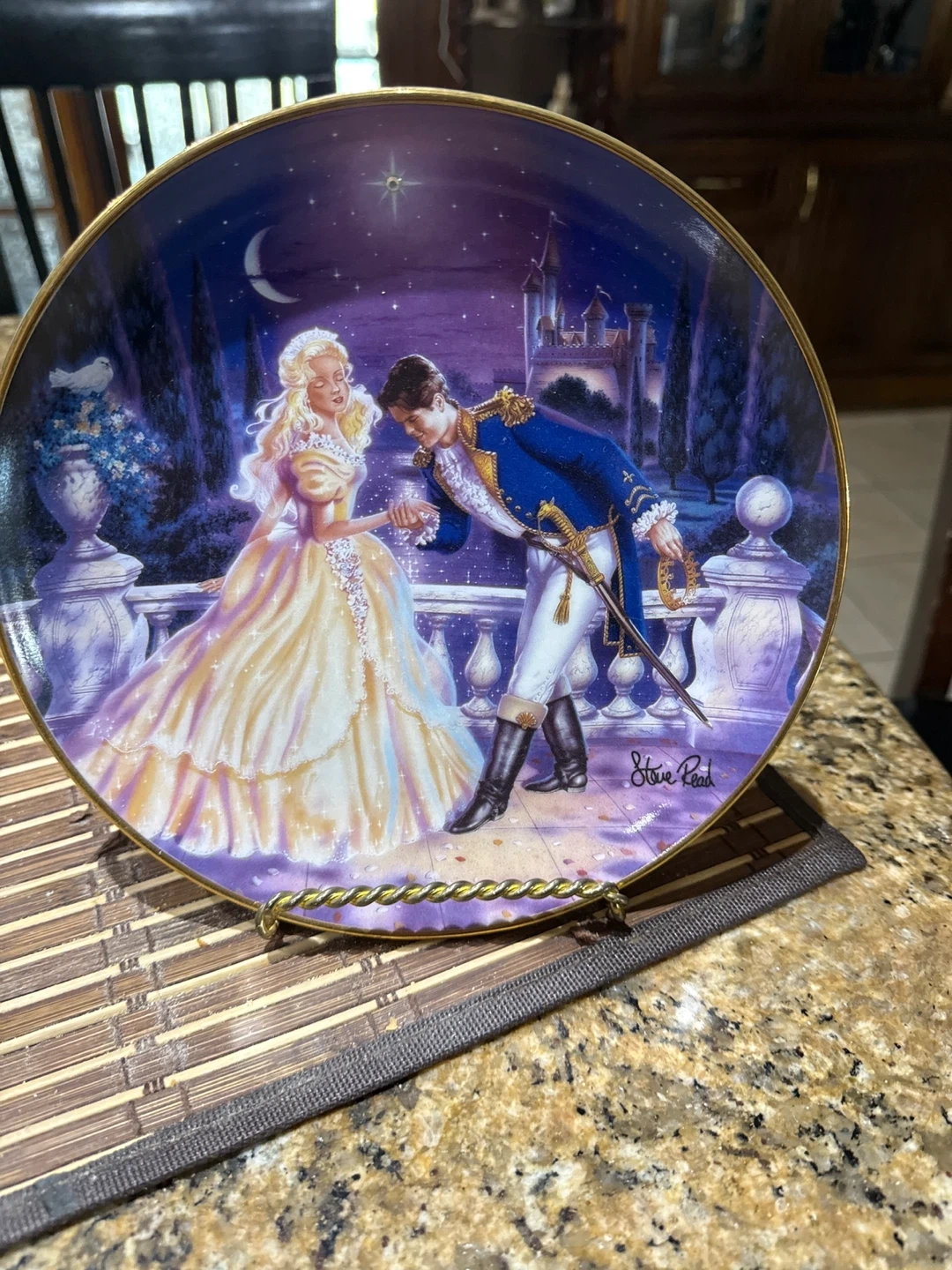 This is a decorative plate from the Steve Read collection. It features a fairytale scene with a prince and princess. The plate has a gold trim.