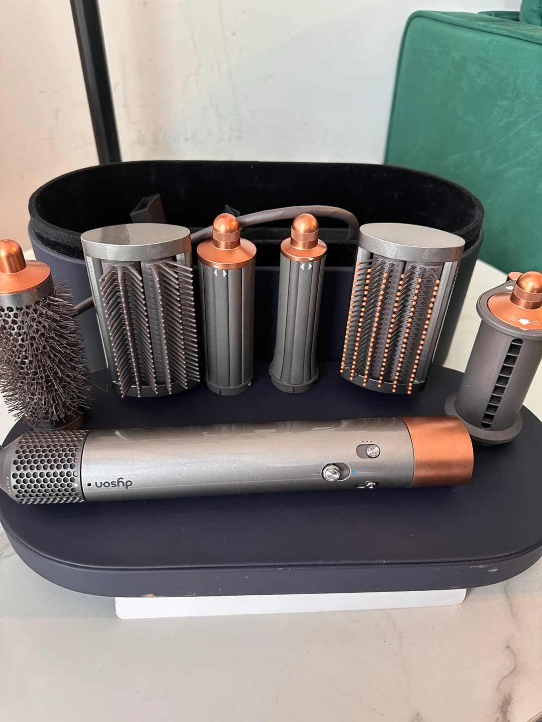 This Dyson Airwrap Complete styler set comes with multiple attachments for curling, smoothing, and shaping hair. It's designed with advanced airflow technology. This set is suitable for achieving various hairstyles with ease.