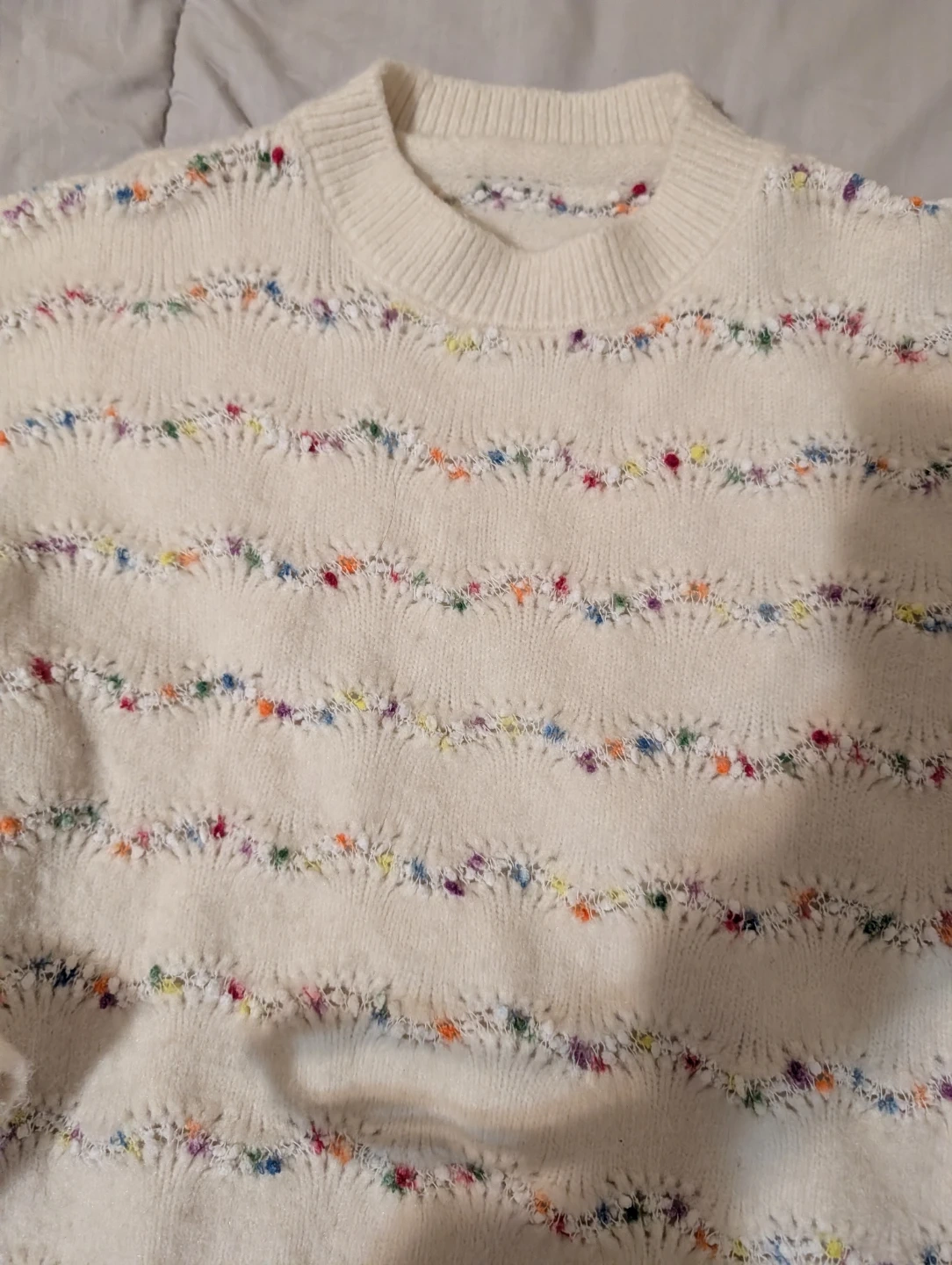 White Sweater with Colorful Stitches🥕