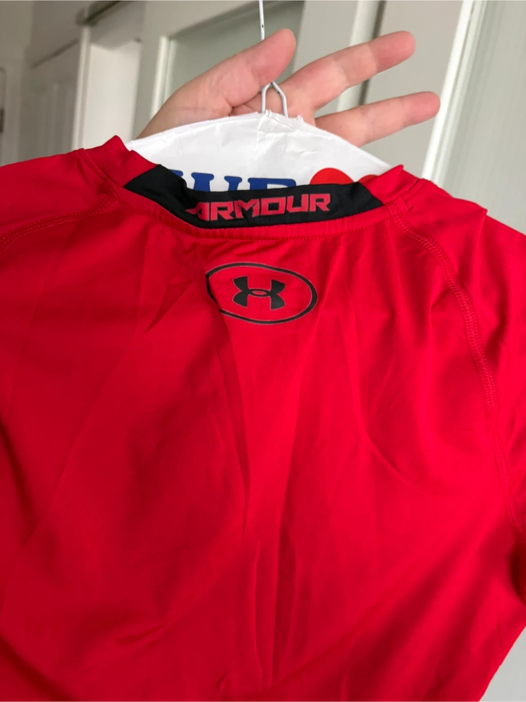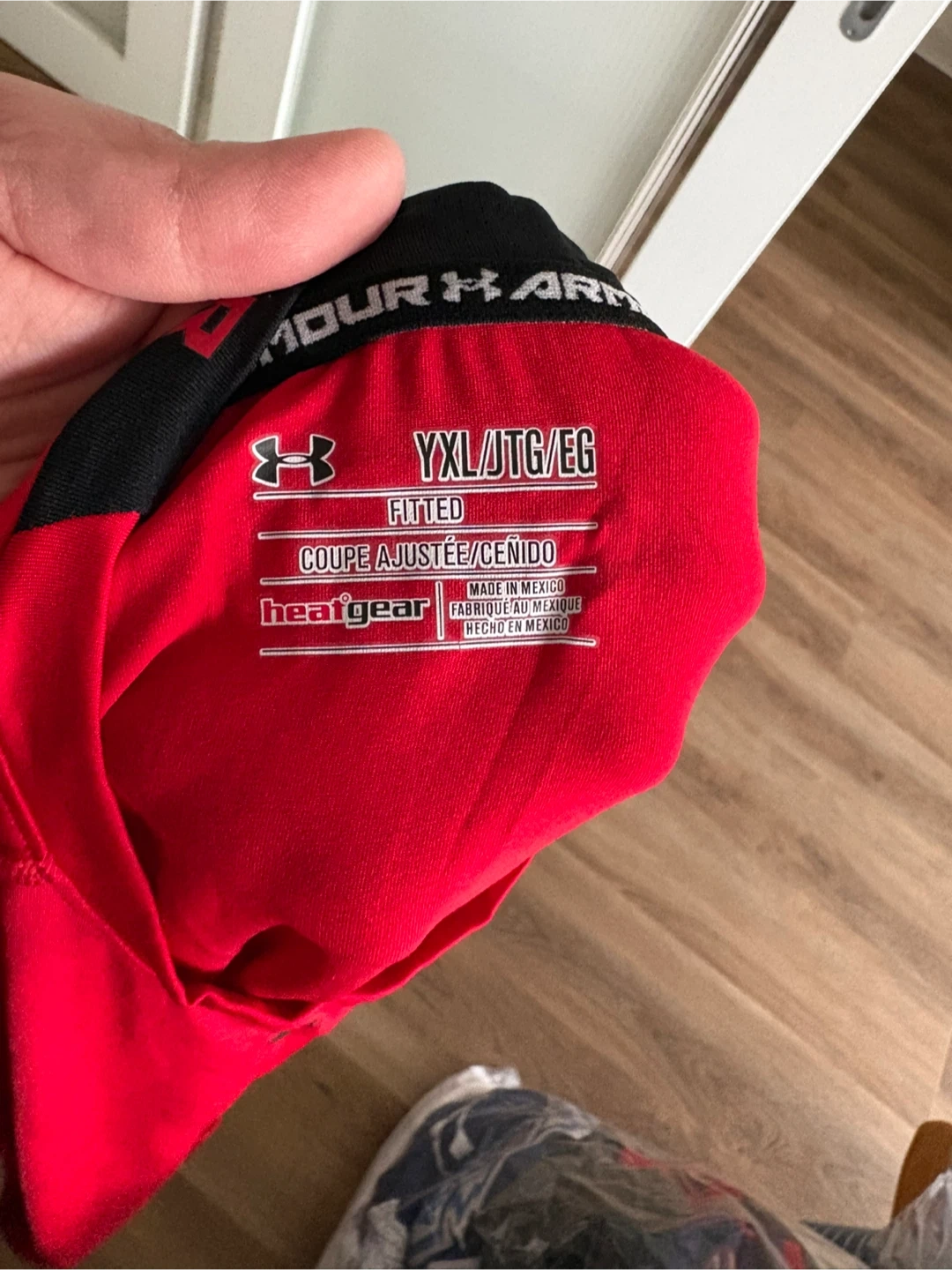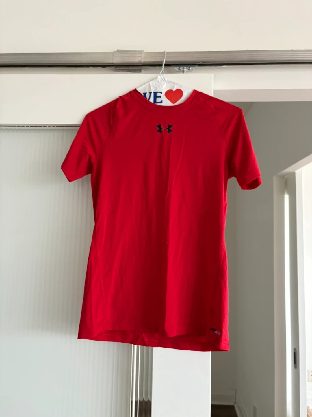 under armour shirt red heatgear youth xl yxl athletic shirt sports shirt gym workout training breathable moisture wicking fitted performance shirt boys activewear nike adidas alternative summer sports shirt upf 30