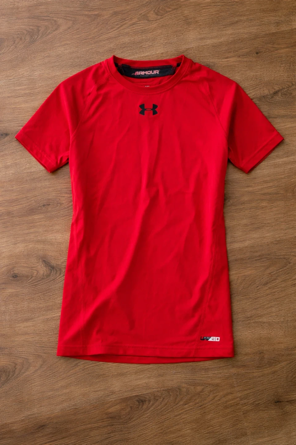 under armour shirt red heatgear youth xl yxl athletic shirt sports shirt gym workout training breathable moisture wicking fitted performance shirt boys activewear nike adidas alternative summer sports shirt upf 30