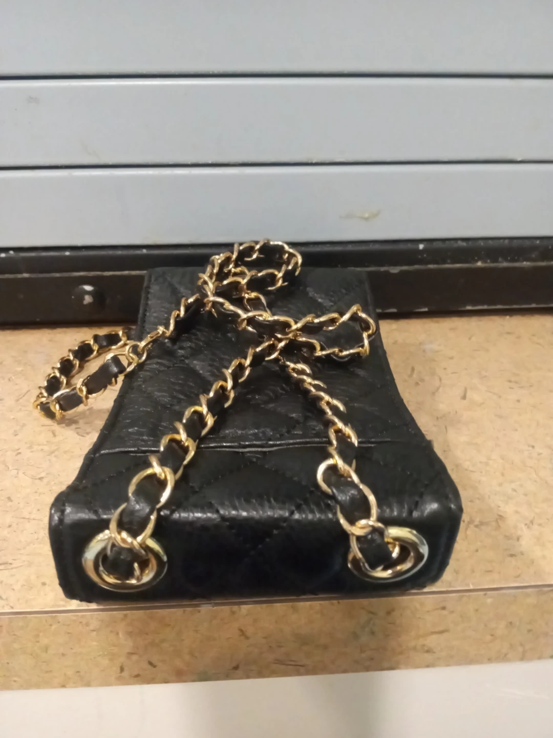 Black Quilted Phone Bag with Gold Chain