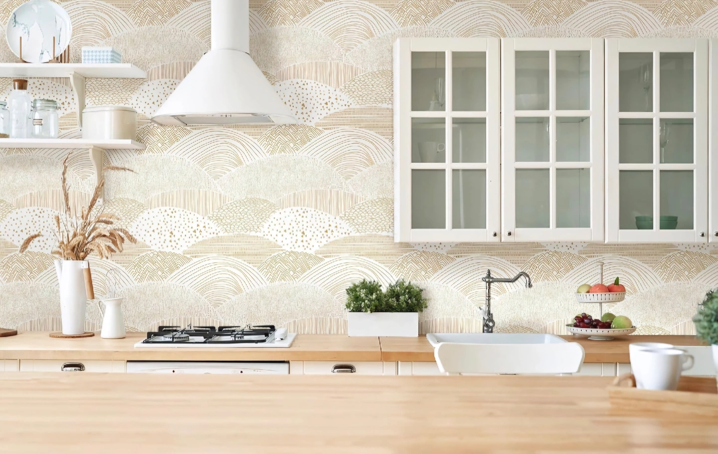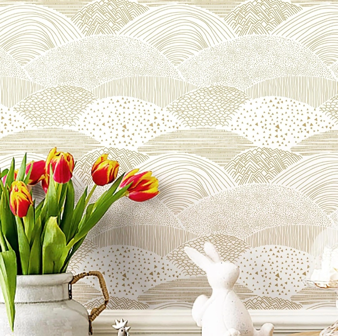 Selling a roll of wallpaper with a lovely gold and white mountain pattern. NEW 17.3''x78.7'' Self-Adhesive, Vinyl, Removable.