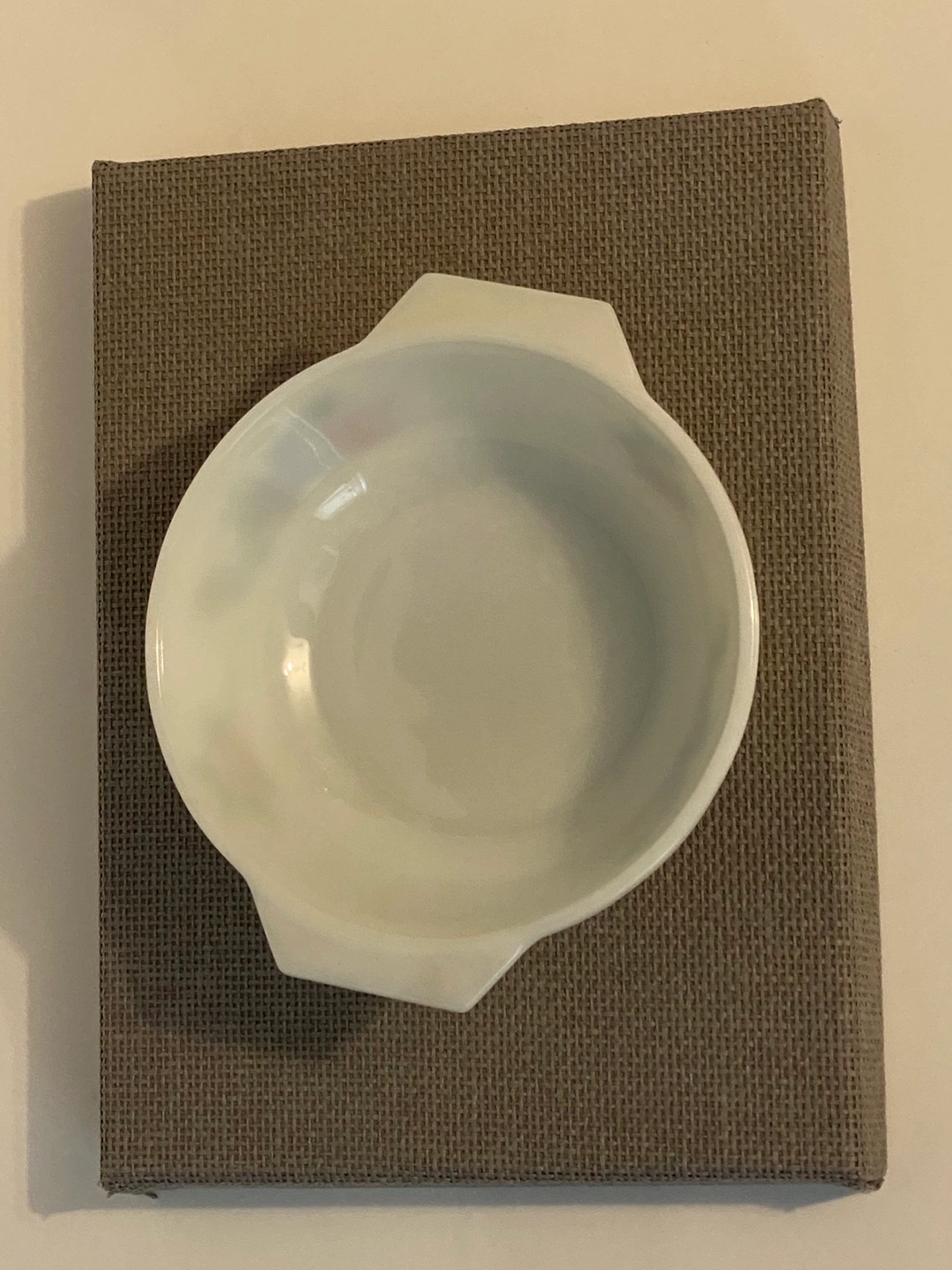 Beautiful early 1970's JAJ Pyrex handled dish with "Tuscany" garden pattern. #505, 6.5 inches in diameter and 2 inches tall.