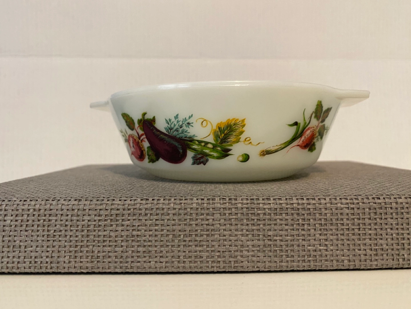 Vintage JAJ Pyrex handled dish with "Tuscany" garden pattern