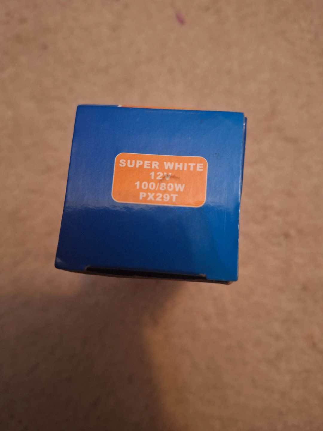 599Selling a Super White 12V 100/80W PX29T car bulb. The box indicates it's reliable, has a long life, is vibration resistant, and has focusing, high efficacy. Box is included. I know it's good for a Nissan Pathfinder πΎ 6 available