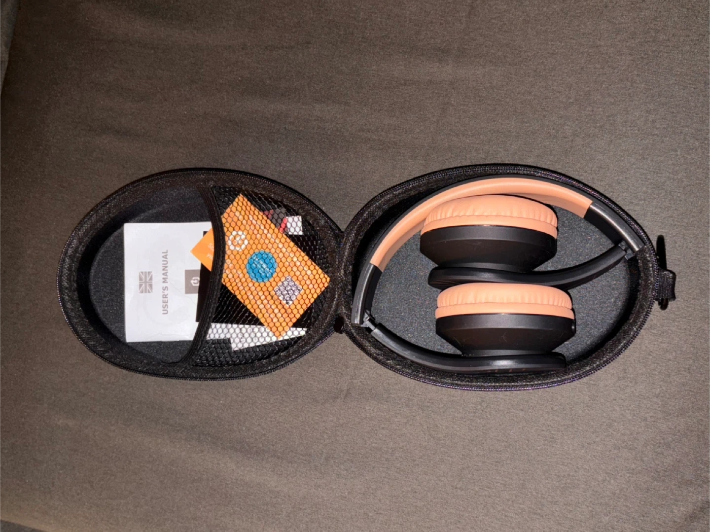 Selling a PowerLocus headphones in black and peach! They come with a carrying case and user manual. Perfect for listening to your favourite tunes on the go. Barely use.