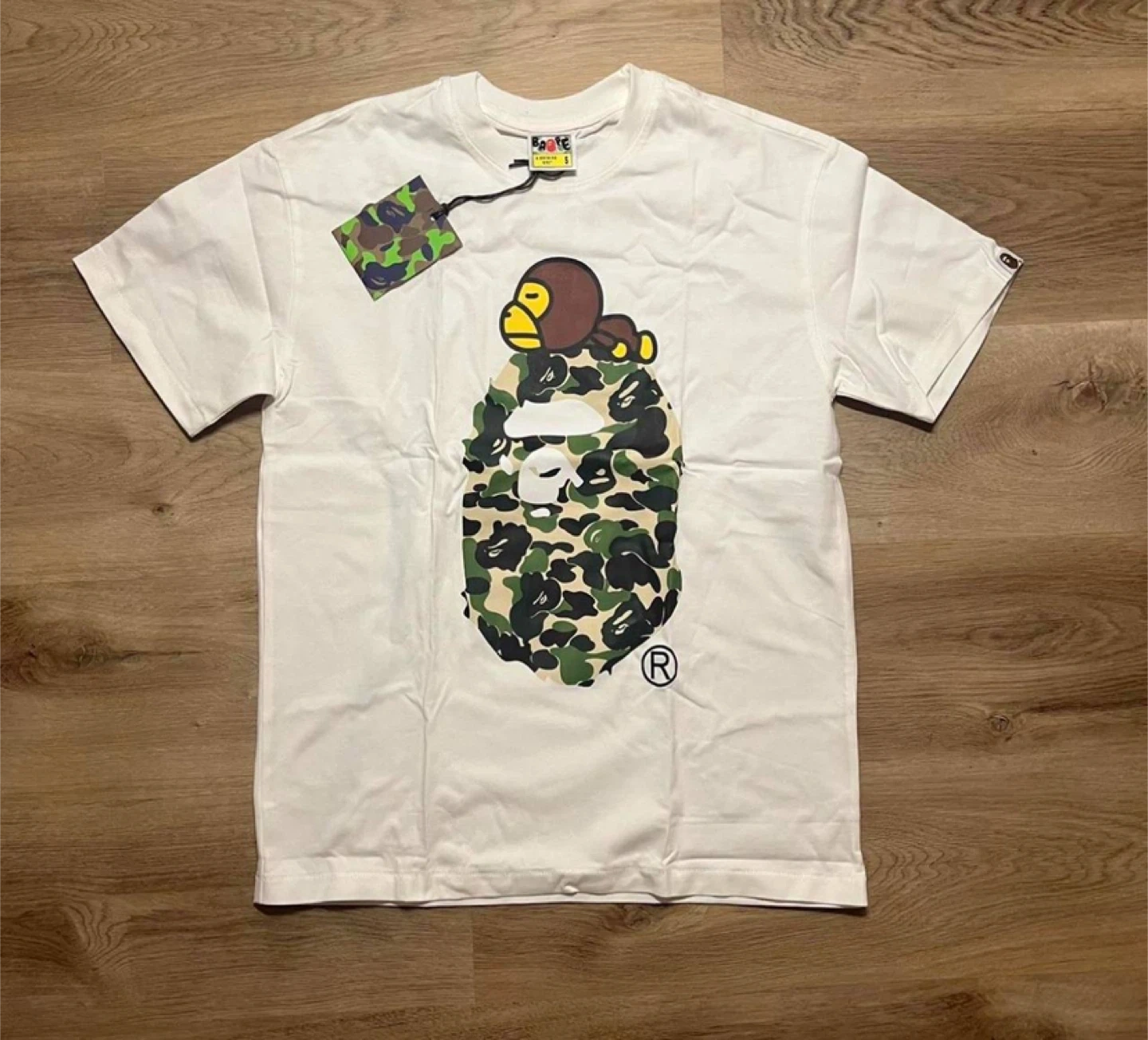 Featuring The Classic Ape Head In Iconic Green Camo With Baby Milo Resting On Top, This Tee Combines Bold Aesthetic With Premium Quality.