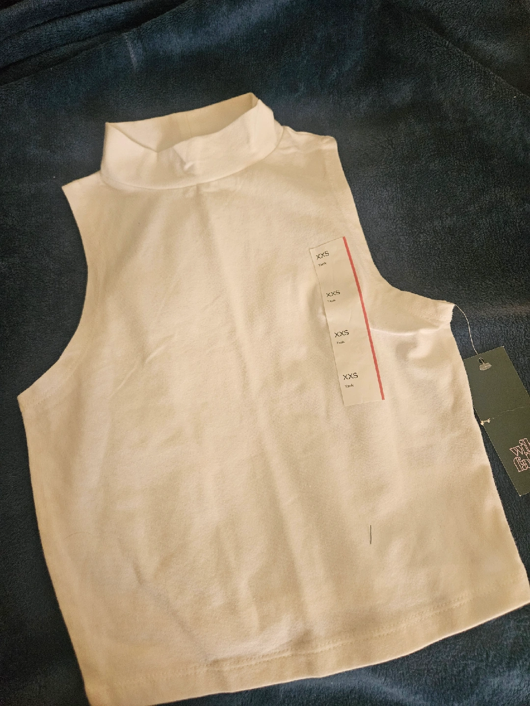 I'm selling a brand new cropped tank top from Wild Fable! It's a size XXS and comes in four colors: white, green, blue, and black. Perfect for layering or wearing on its own!