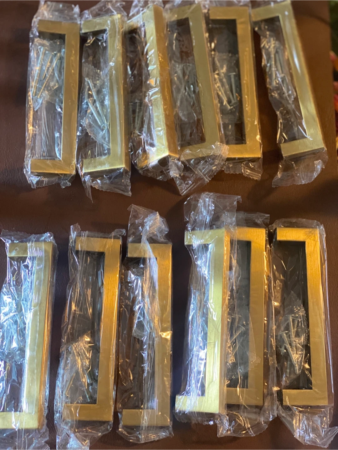 Selling a set of 12 brand new gold drawer pulls! They are still in their original packaging with screws included. These would be perfect for updating your kitchen or bathroom cabinets. They have a sleek, modern look and are a great way to add a touch of elegance to your home