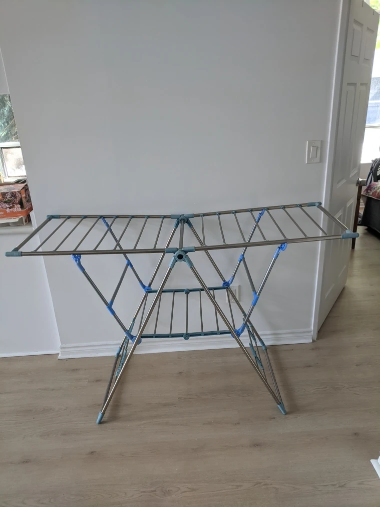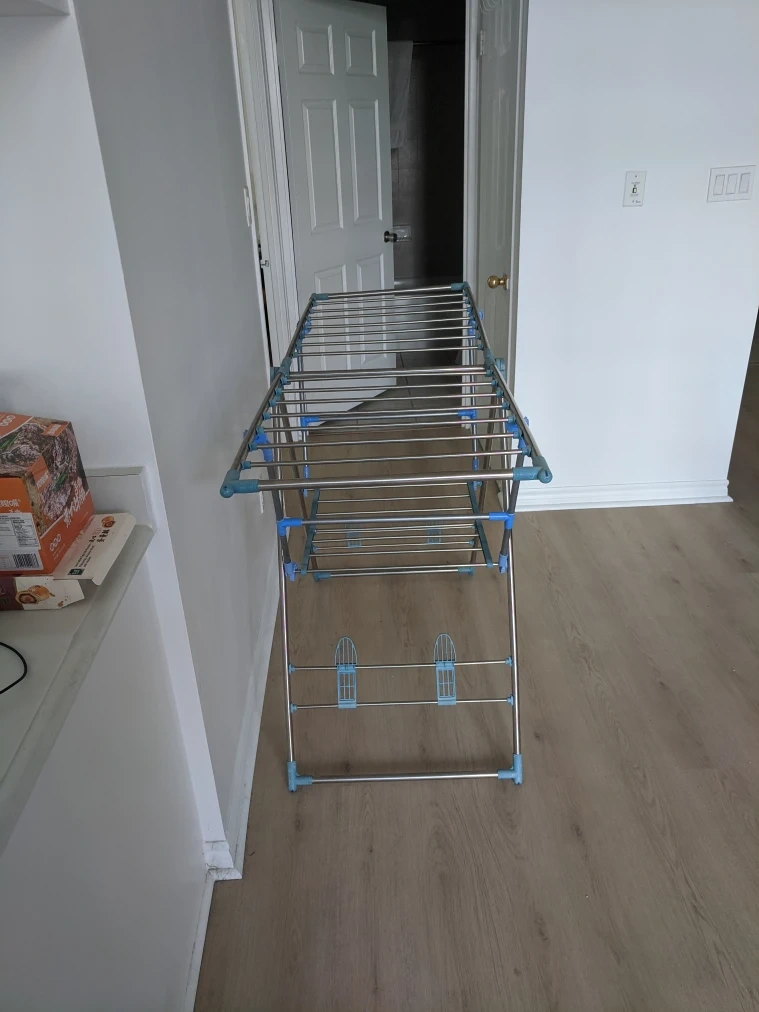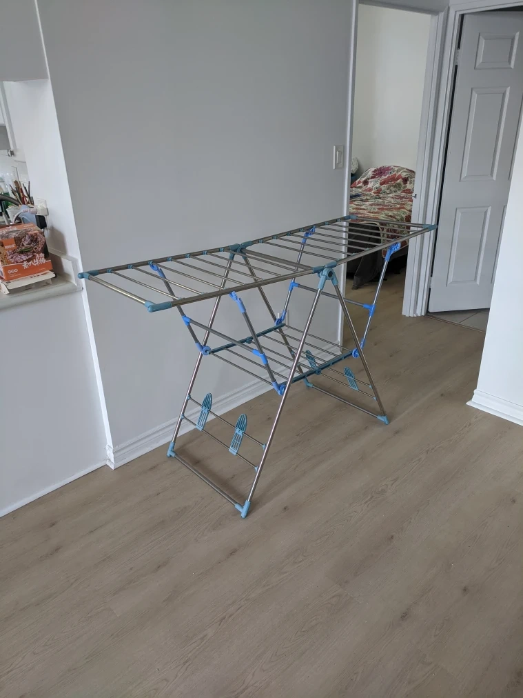 1000+Clothes drying rack in great condition! It's super convenient and easy to fold up and store away when not in use. Perfect for small spaces or anyone who prefers air-drying their clothes and shoes. old but ok. it works perfectly. Pick up at 195 Merton Street Toronto Or pick up at Subway station Davisville. And I can deliver it to your house but you need to pay me another $3. Thanks.