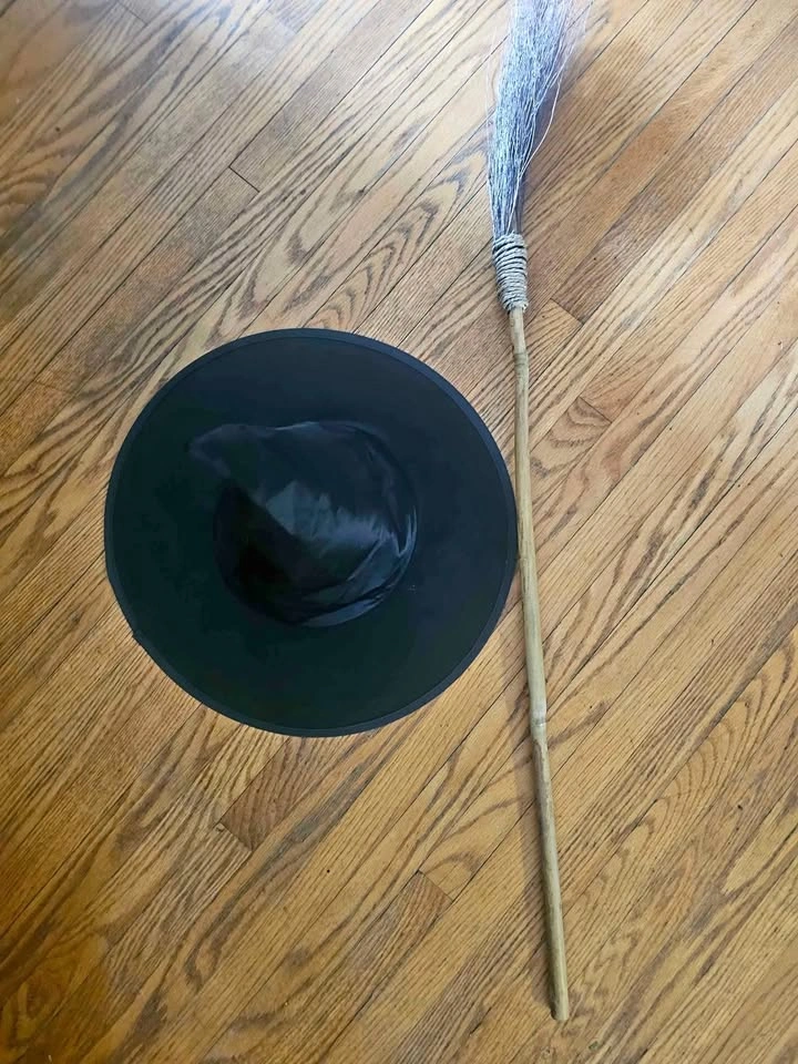 Great accessories for a witch costume for halloween. Adult size witch hat and broom stick! I have a large witch dress for sale if needed!!