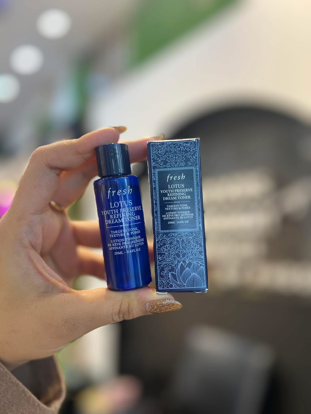 I'm selling a Fresh Lotus Youth Preserve Refining Dream Toner! This toner targets tone, texture, and pores. It comes in a 20ml size and the box is included! It's a great addition to your skincare routine