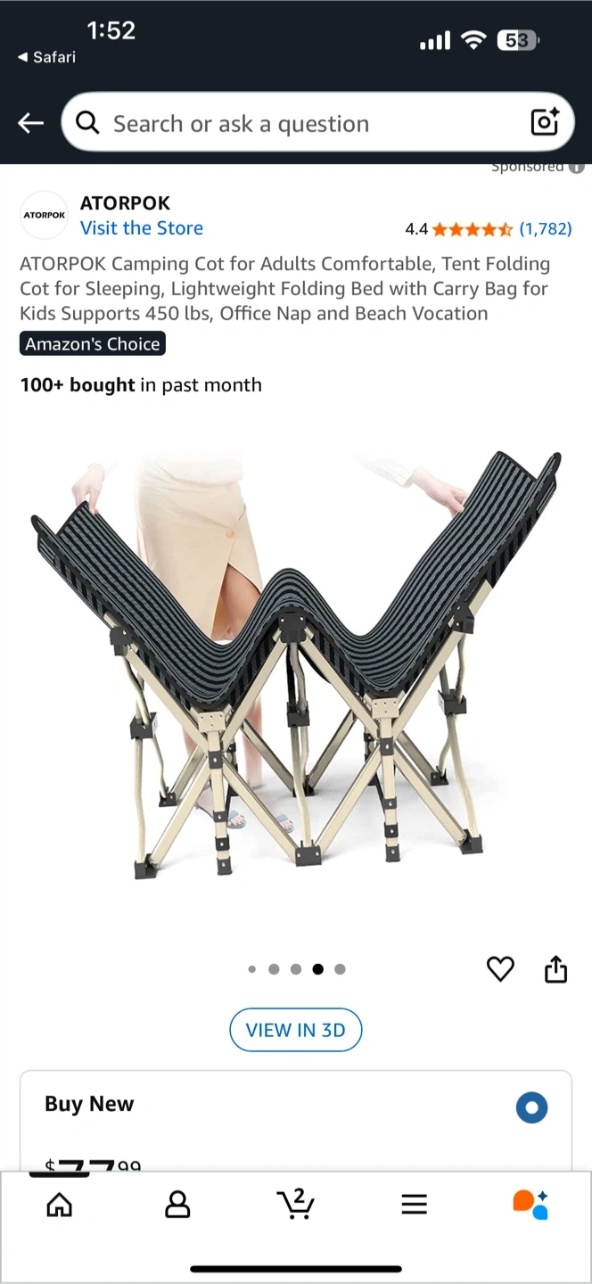 Looking to sell this ATORPOK camping cot! It's perfect for adults and kids, supporting up to 450 lbs. It's comfortable and lightweight, great for sleeping, office naps, or beach vacations. Hardly used.