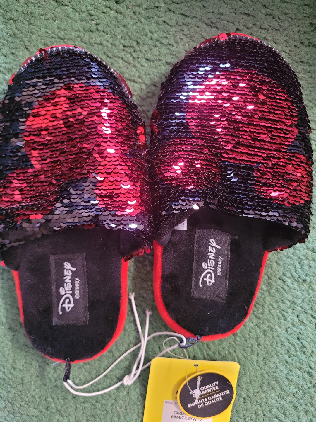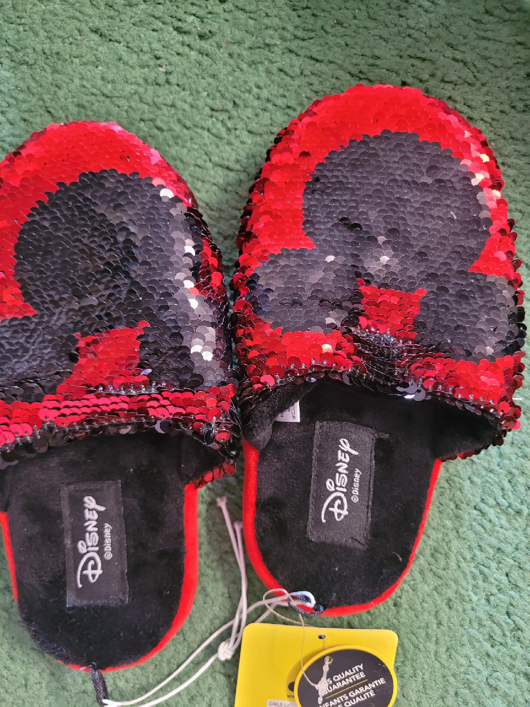 These adorable Disney Minnie Mouse slippers are perfect for your little one! They feature a fun sequin design in red and black. you can play with them and chnage colours by flipping sequins. Size 13-1. Originally bought for $19.97.