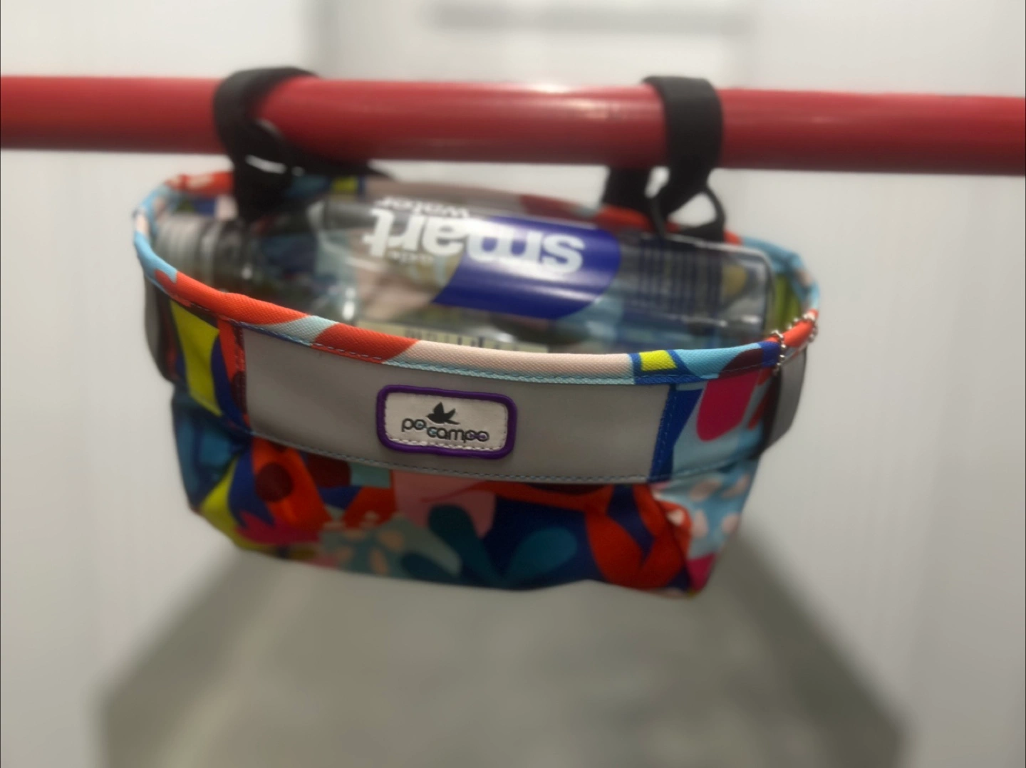 This Po Campo Whoosh Bicycle Basket in the Aqualila pattern is perfect for carrying your essentials on bike rides! It's easy to attach with reflective details for added safety. It also features a secure zippered pouch and is machine washable (cold).