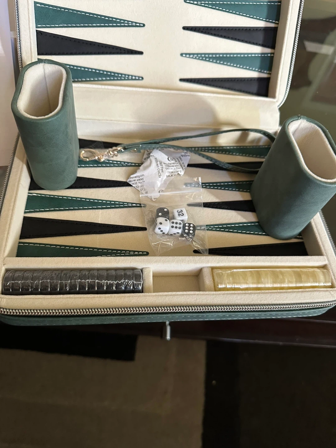 248Selling a Lingle Backgammon set! It comes with the case, dice, and all the pieces you need for a fun game night. The set is in great condition and ready for a new home. It also includes the original instructions.