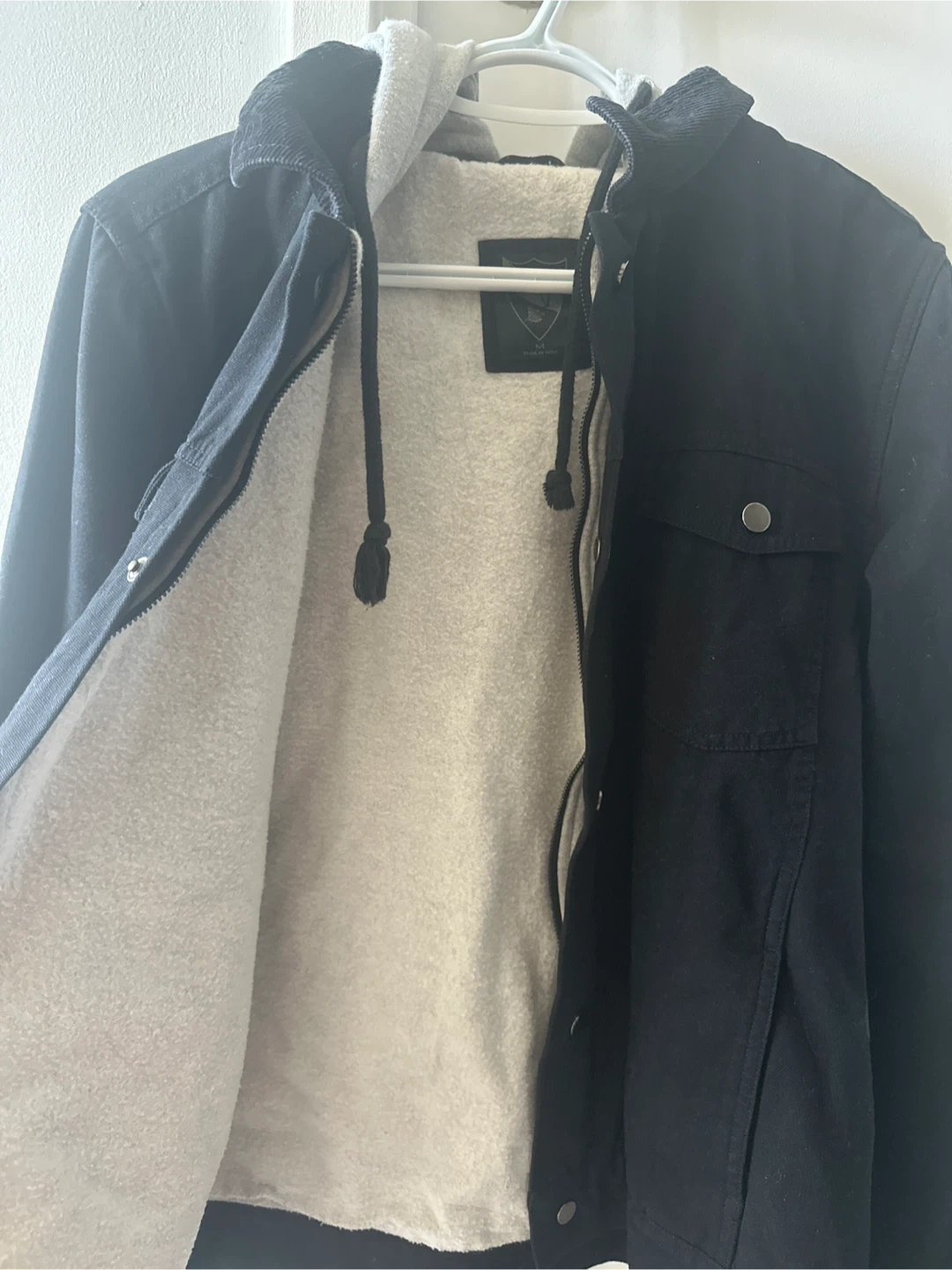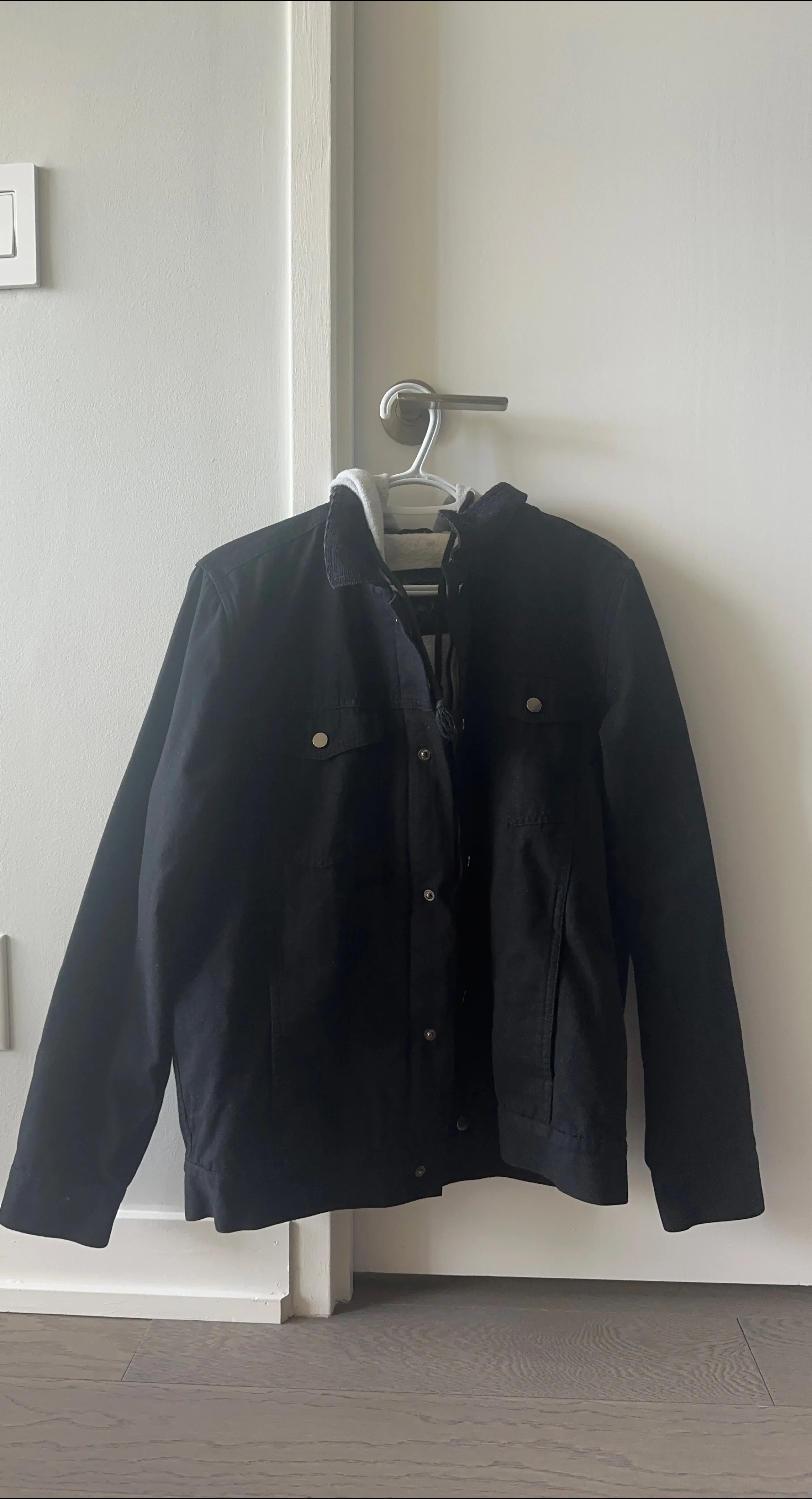 Here's a gently used Vans jacket in size medium! It's black and features a cozy, soft lining. Perfect for adding a bit of warmth and style to your outfit.