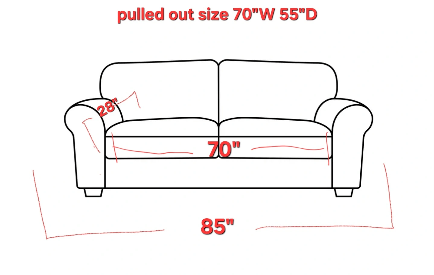 When pulled out, it measures 70 inches wide and 55 inches deep.