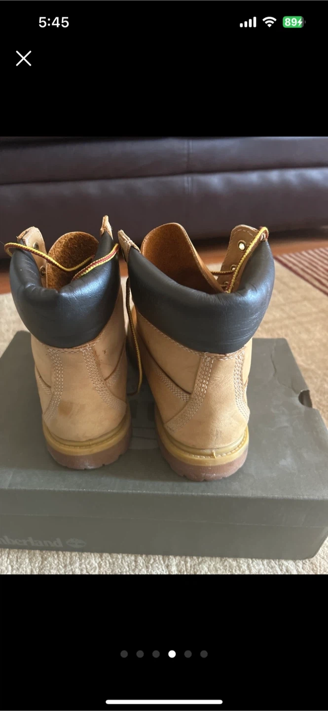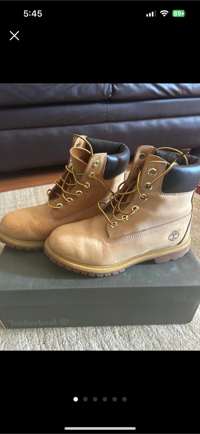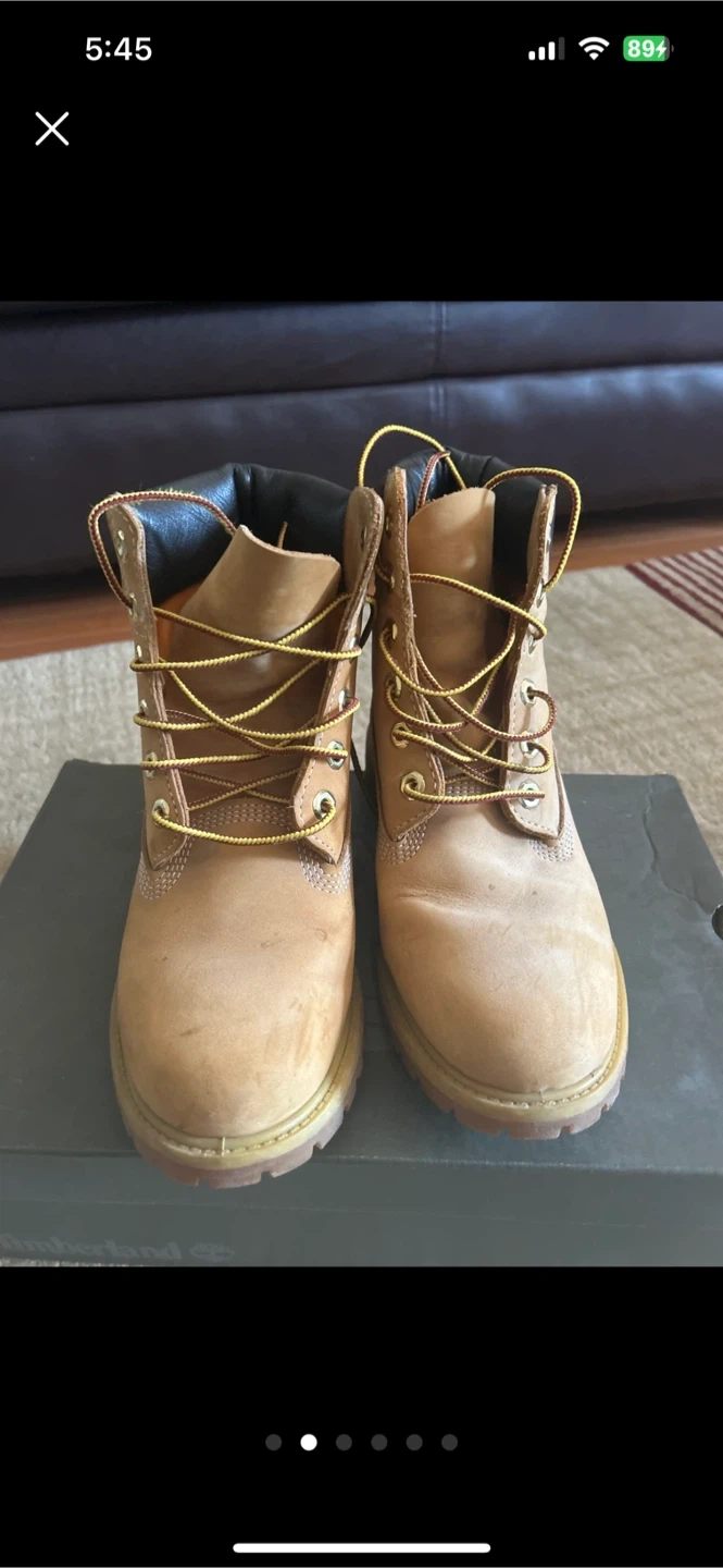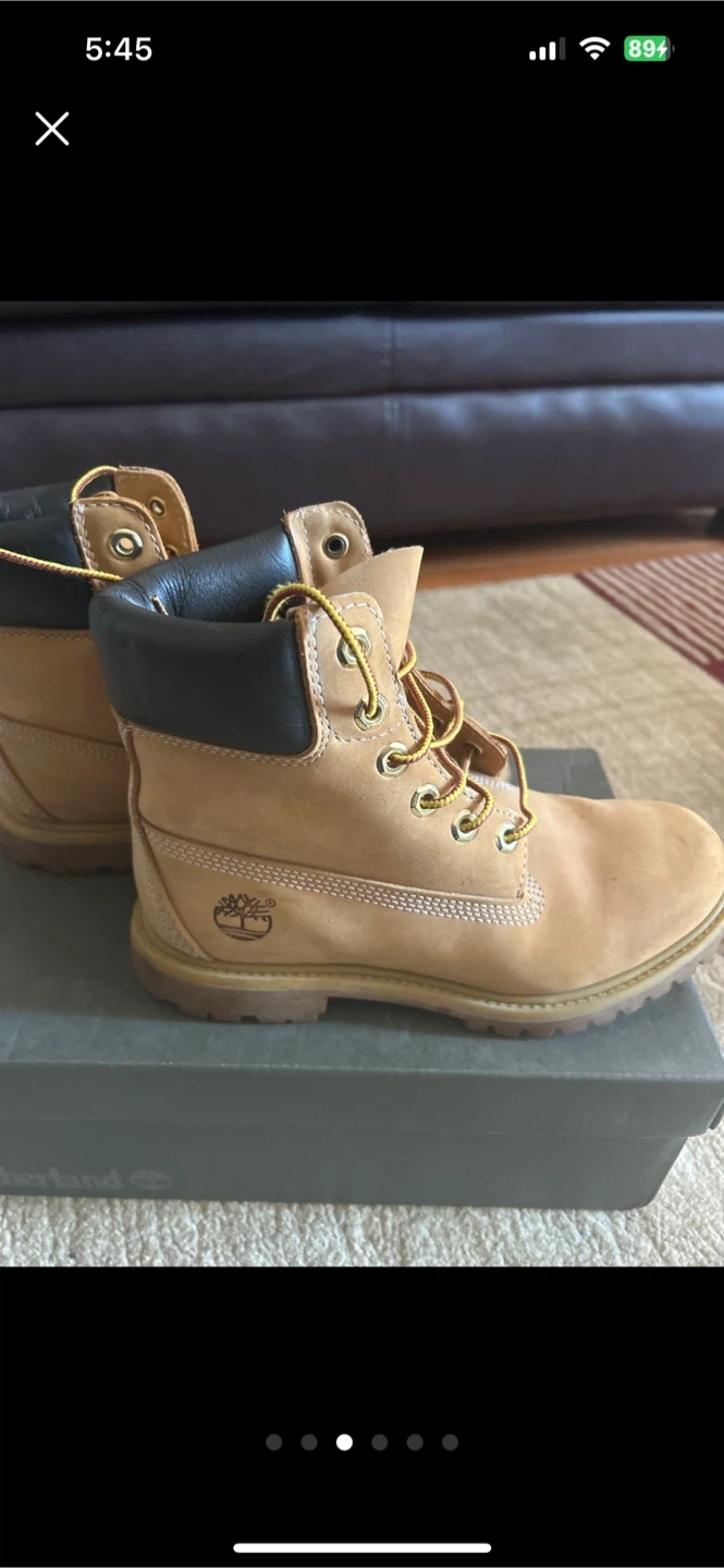 414Selling a pair of classic Timberland boots in a size 7..5. These are the iconic yellow/tan colour. They come with the original box. Great for all seasons!