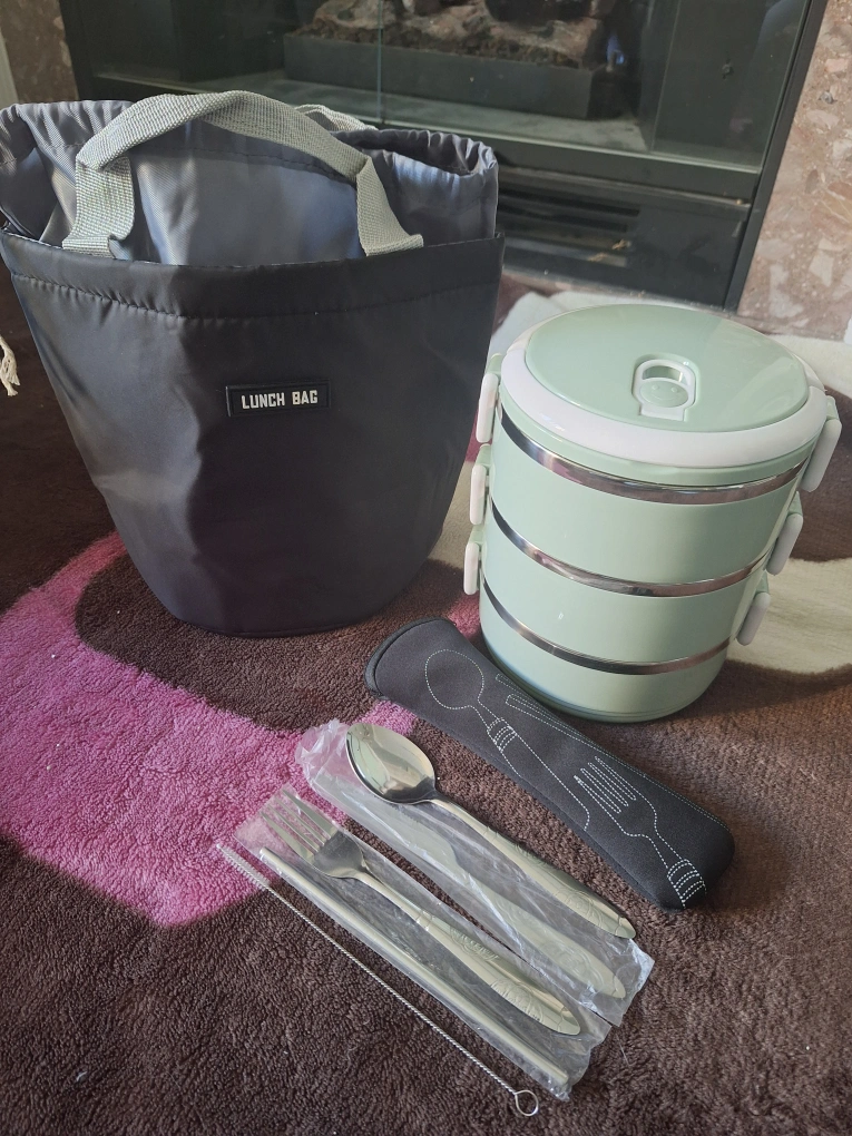 NEW 3-Tier Stackable Lunch Box with Lunch Bag and Cutlery Set π΄