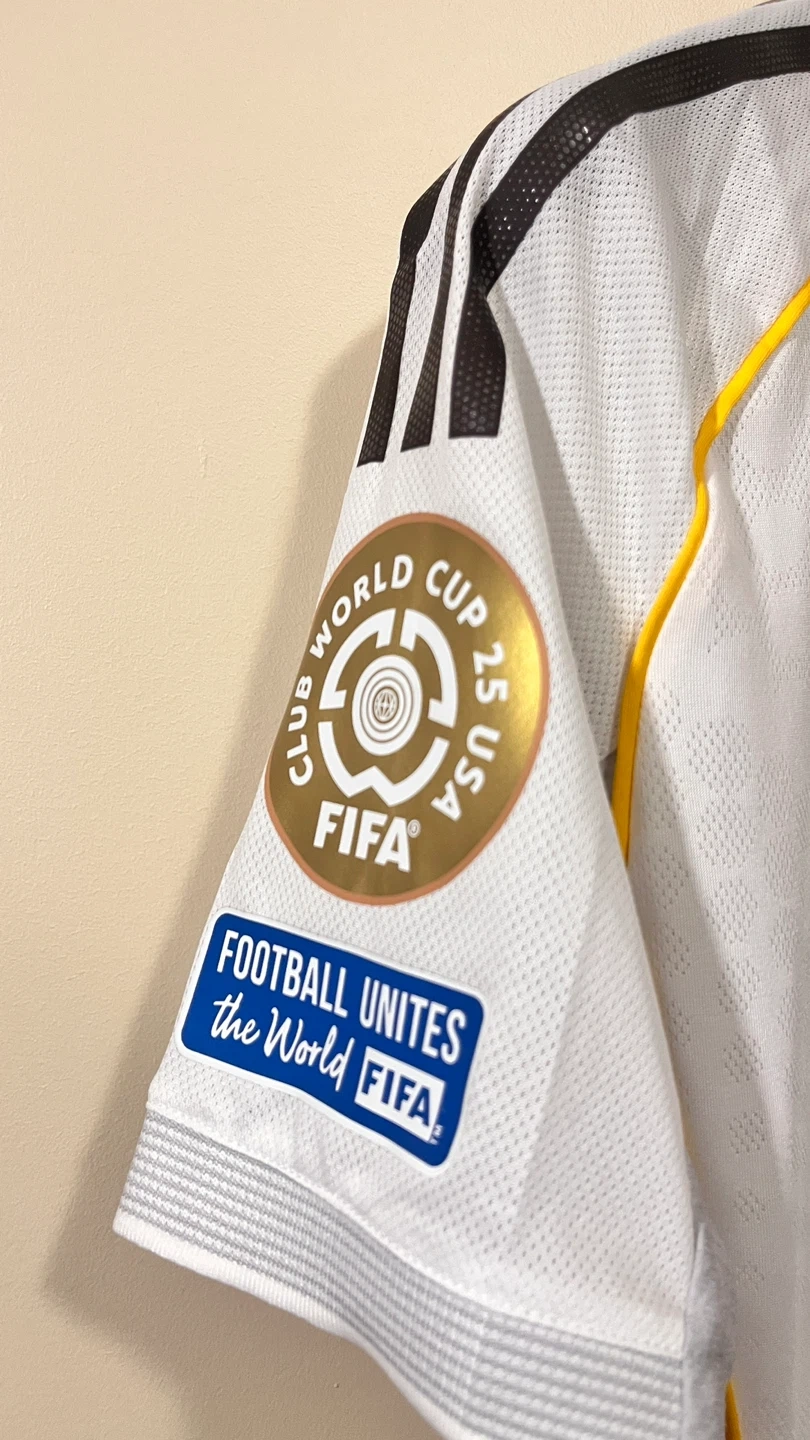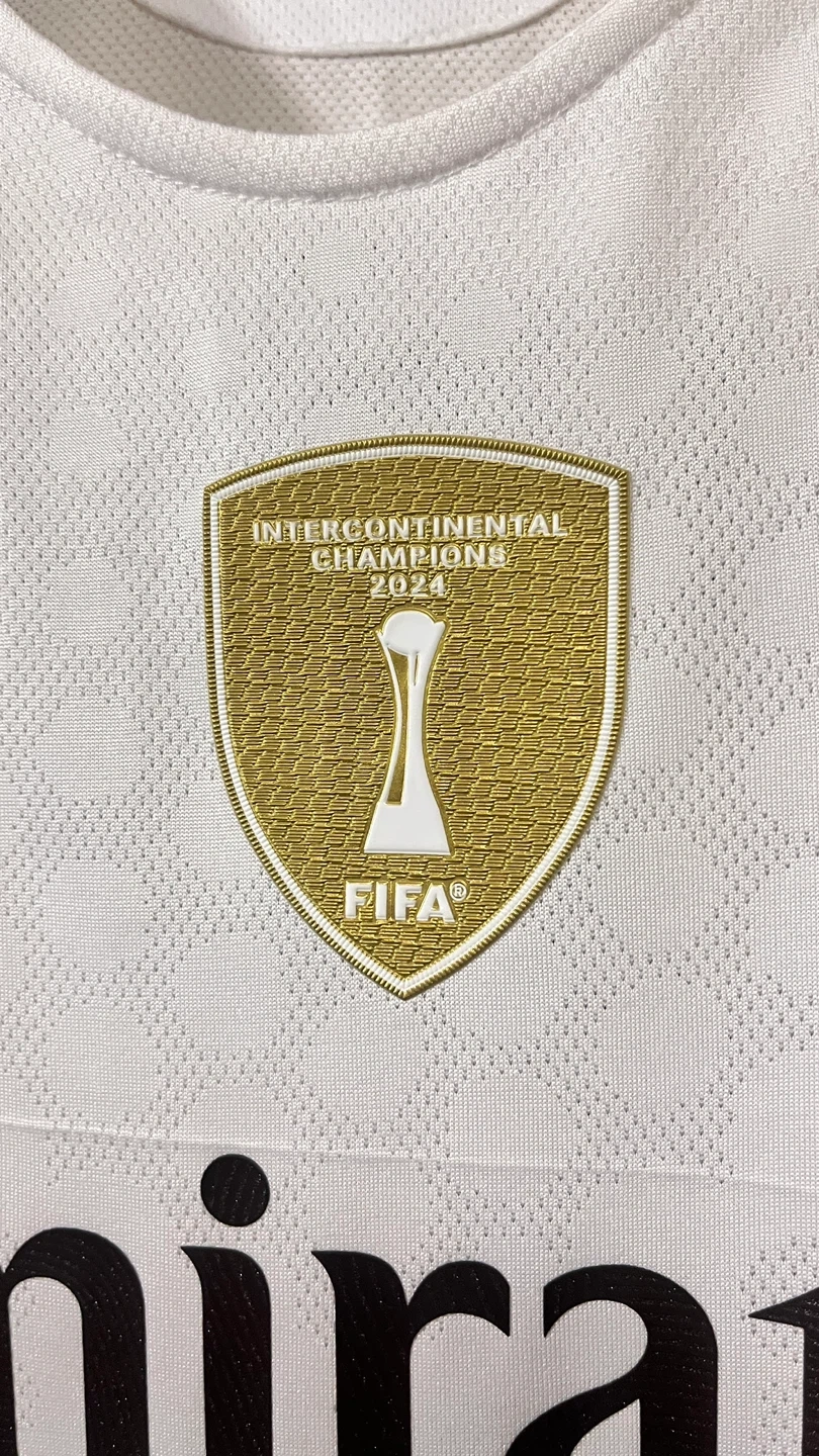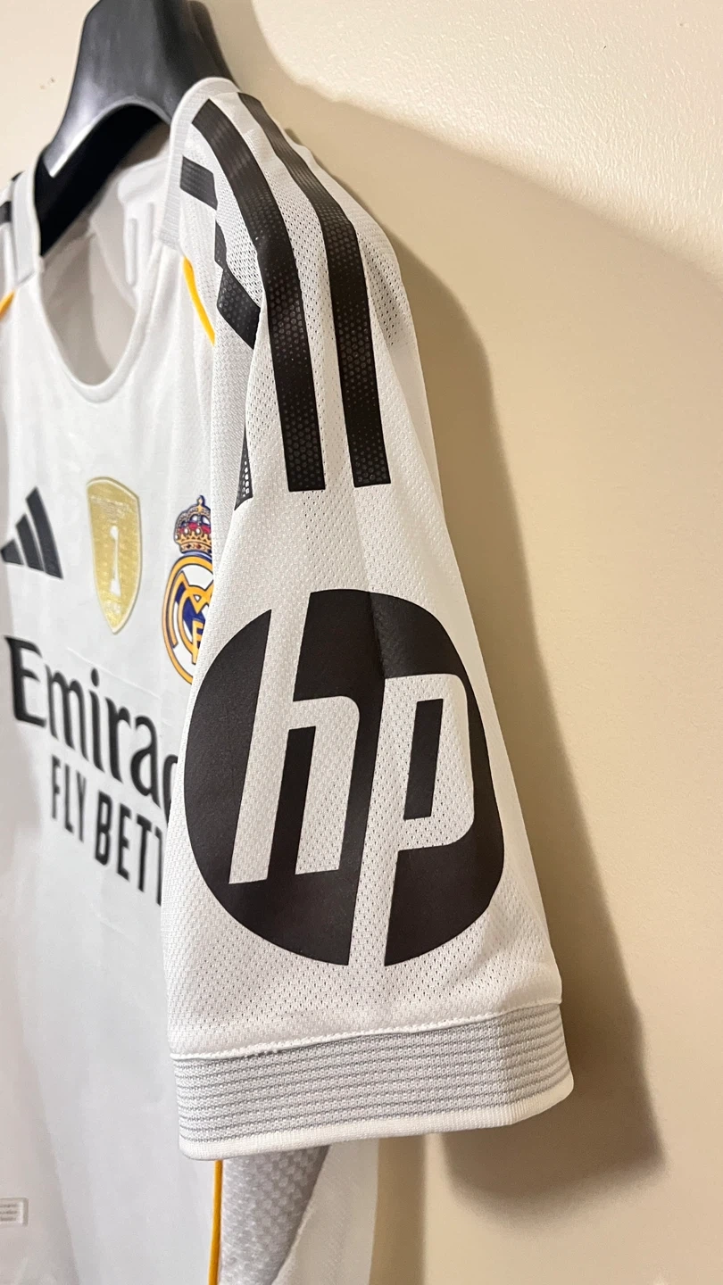 Selling a Real Madrid jersey from the 2025 season! It features the Adidas logo, the Emirates FLY BETTER sponsor, and the Real Madrid club crest. It also has the Intercontinental Champions 2024 patch and the FIFA Club World Cup patch