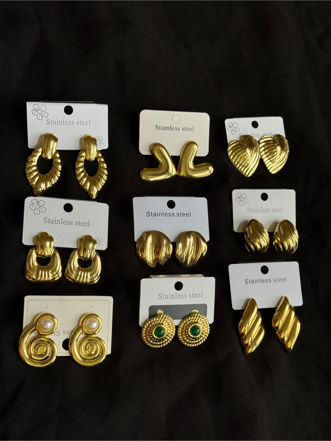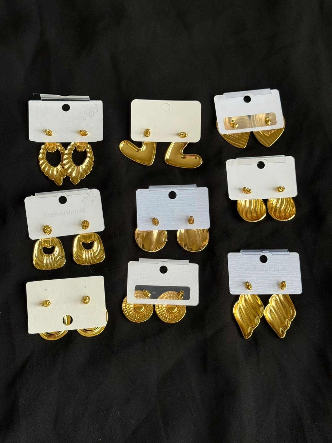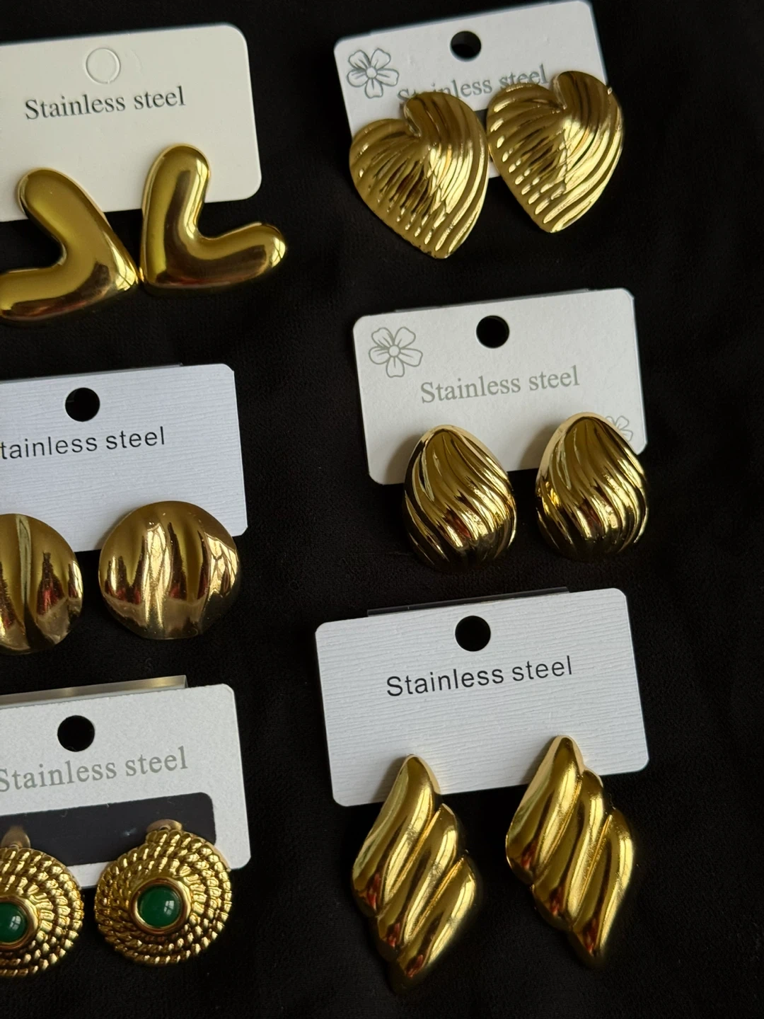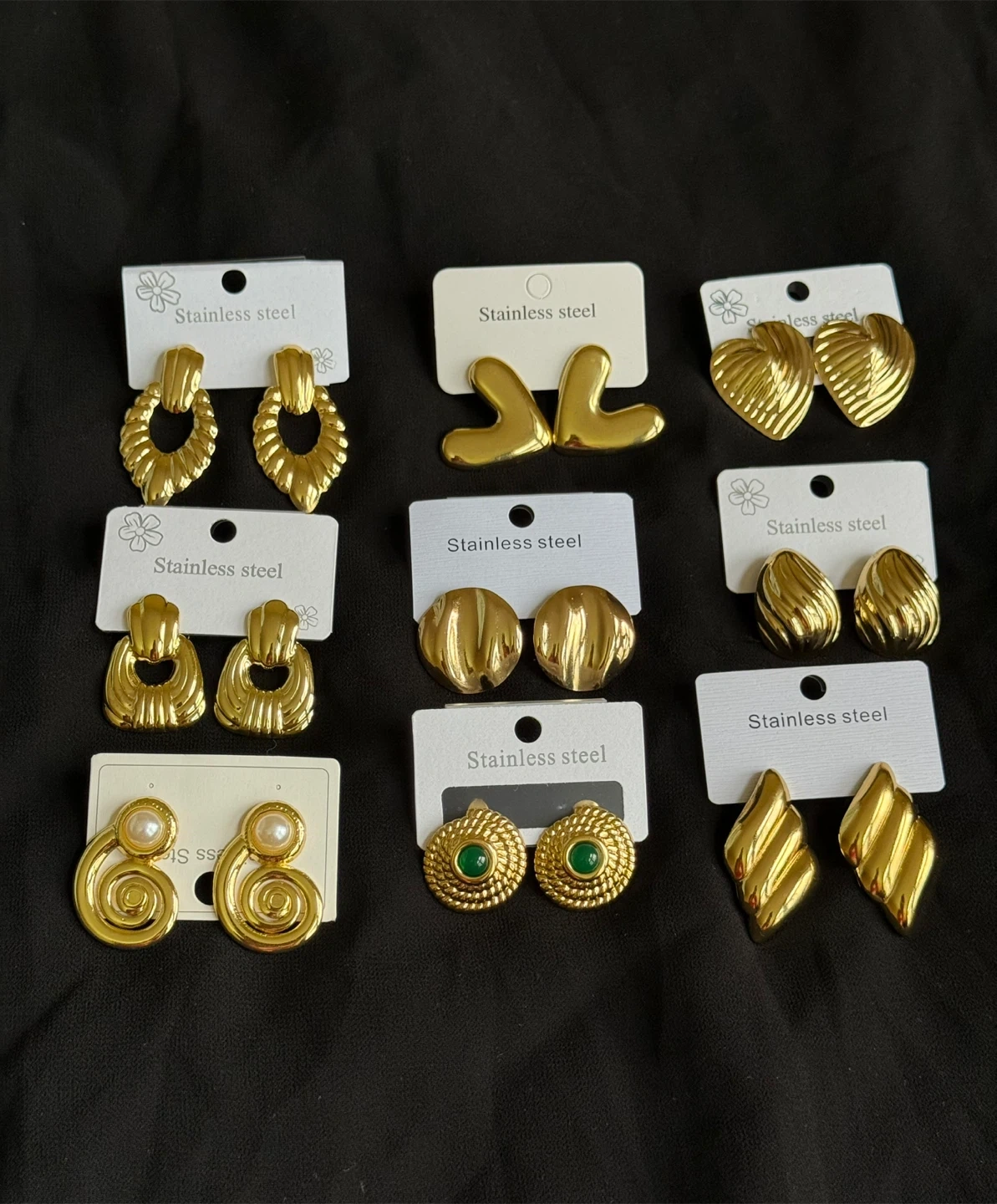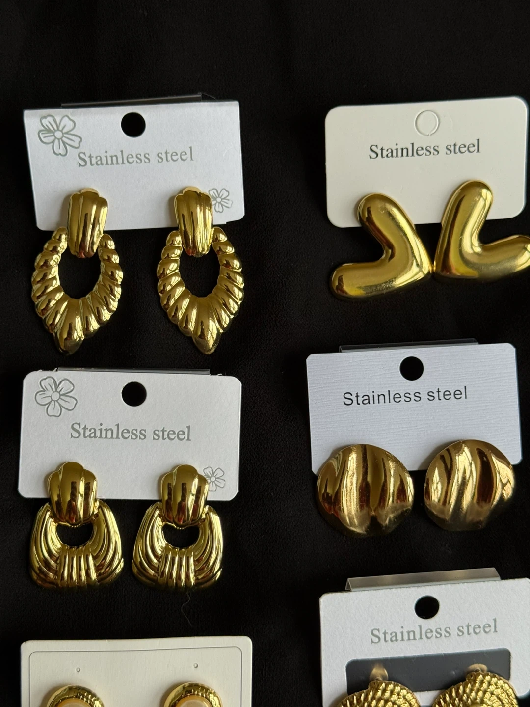 Elegant gold stainless steel earrings set perfect for any occasion. Add a touch of sophistication to your look with these stylish pieces.
