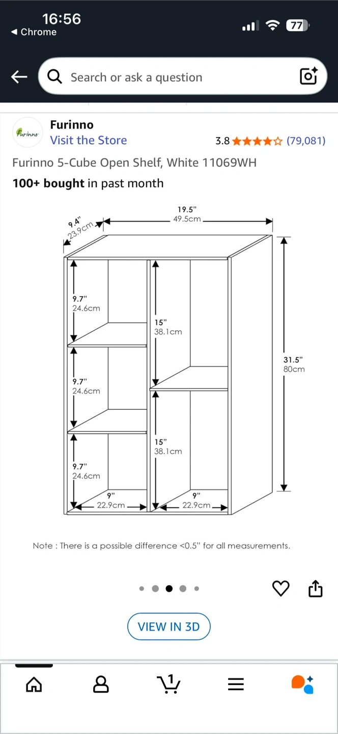 Selling a Furinno 5-Cube Open Shelf Bookcase in white! It's in great condition and comes in its original box, never opened. This is a great shelf for organizing books or displaying items. The dimensions are approximately 19.5" wide and 31.5" high. Easy to assemble with no tools required! Originally bought for $75.90. Bought two, decided to just use one.