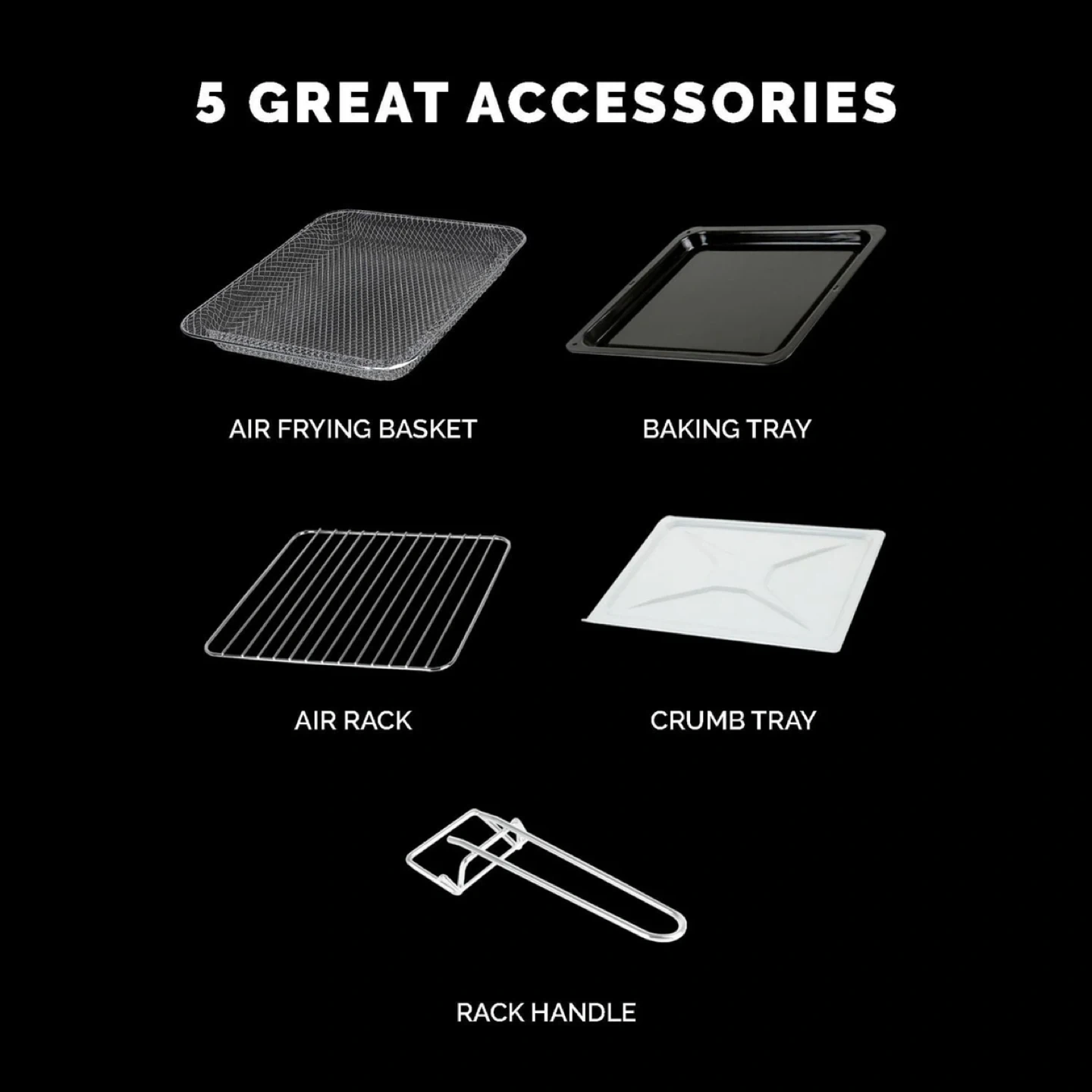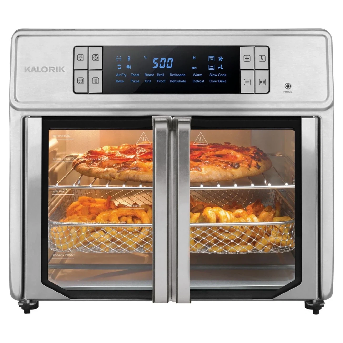 This Kalorik air fryer oven is a versatile appliance that can replace ten others! It functions as an air fryer, oven, grill, toaster, rotisserie, pizza oven, roaster, broiler, warmer, and dehydrator.