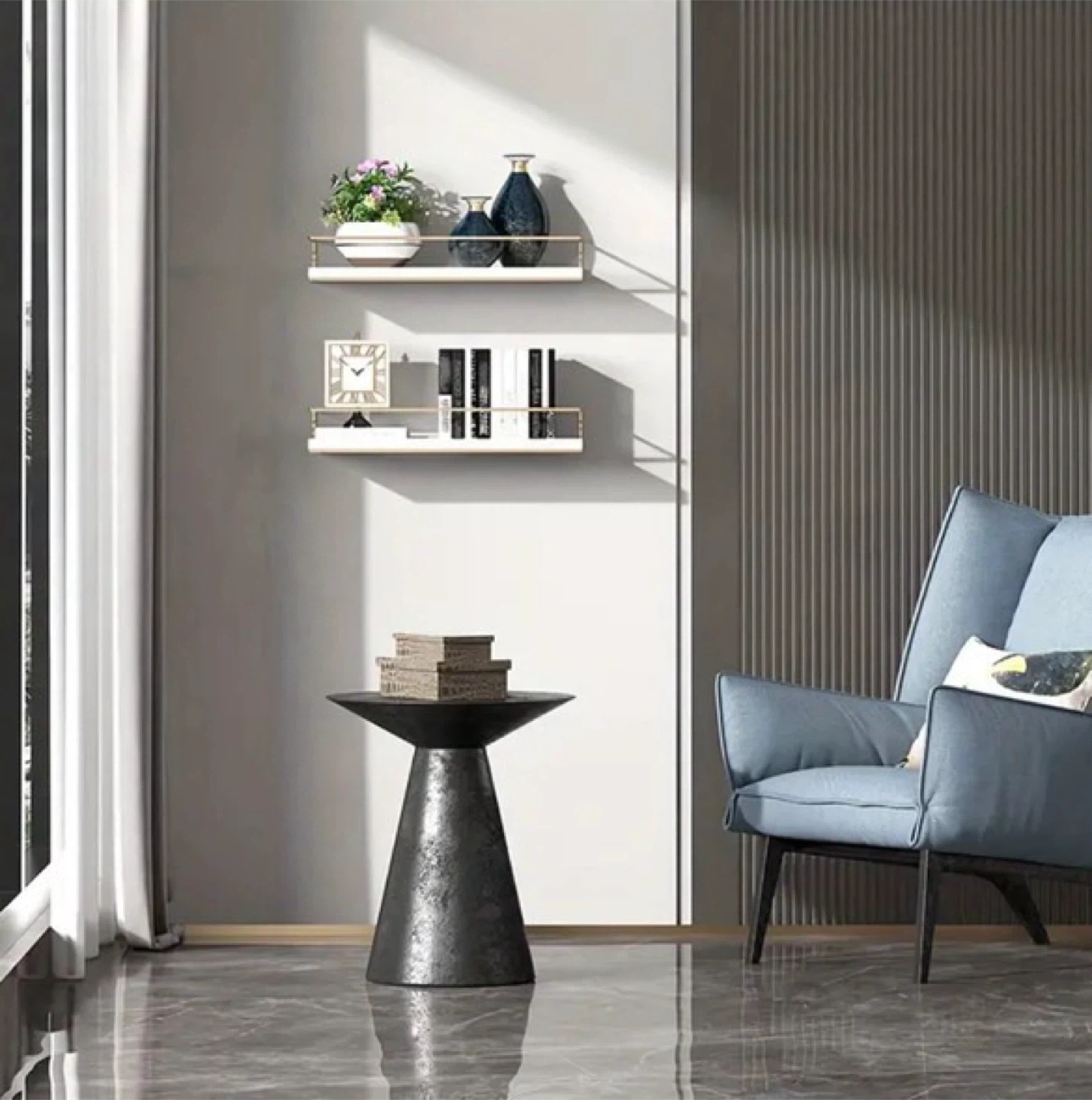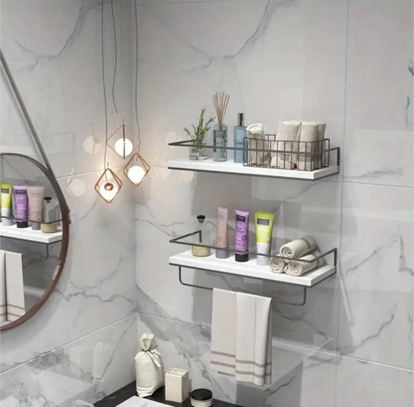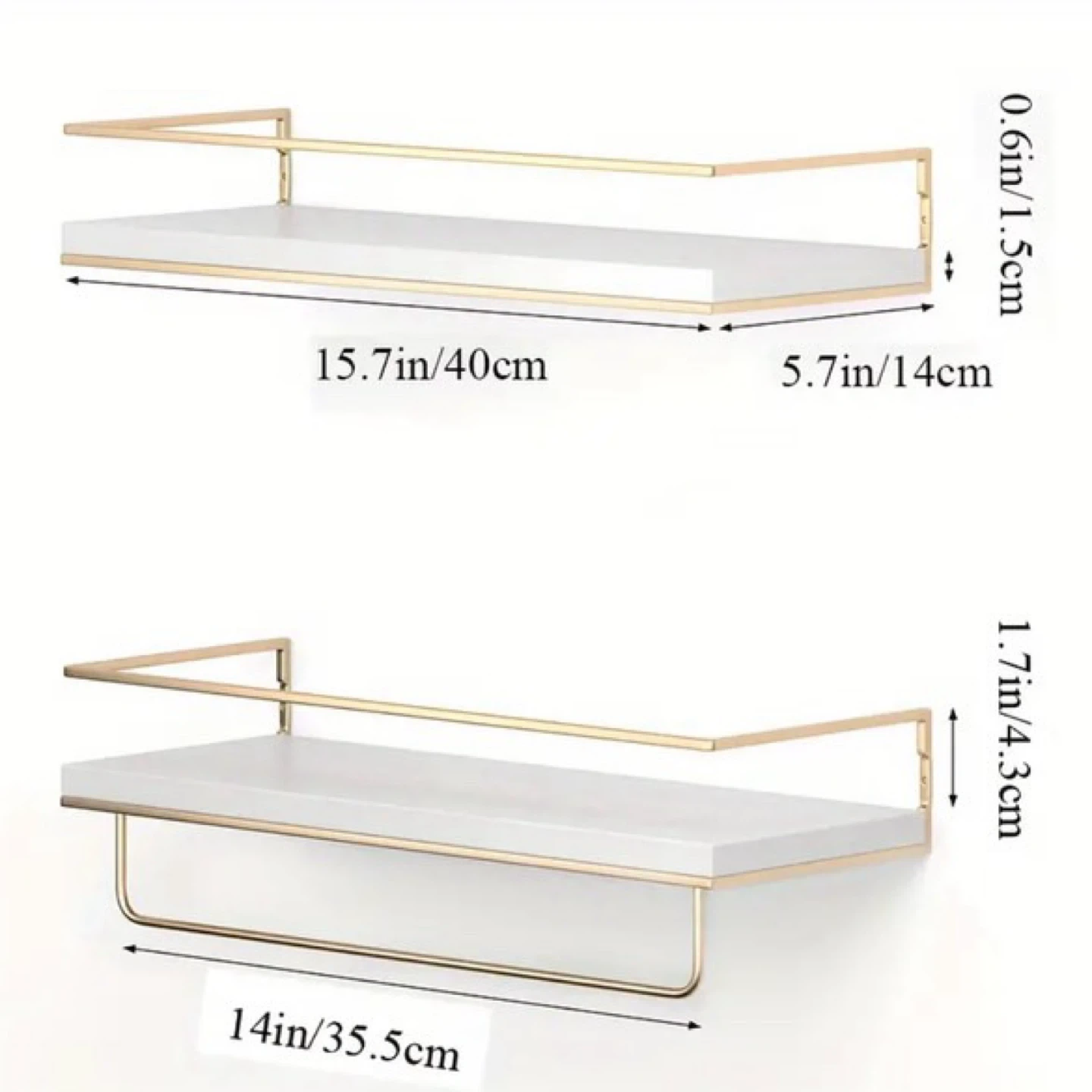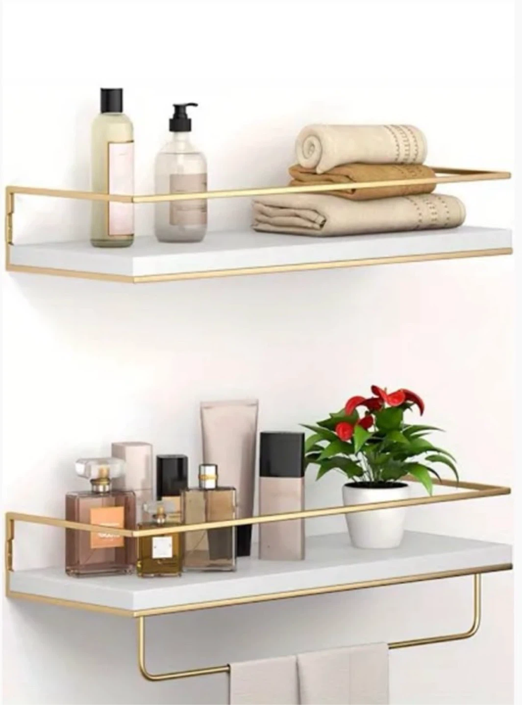 10JCJX Floating Shelves Set: 2 Pieces with Golden Towel Rack, Decorative Storage Shelves for Bathroom, Kitchen, Living Room, and Bedroom (White)