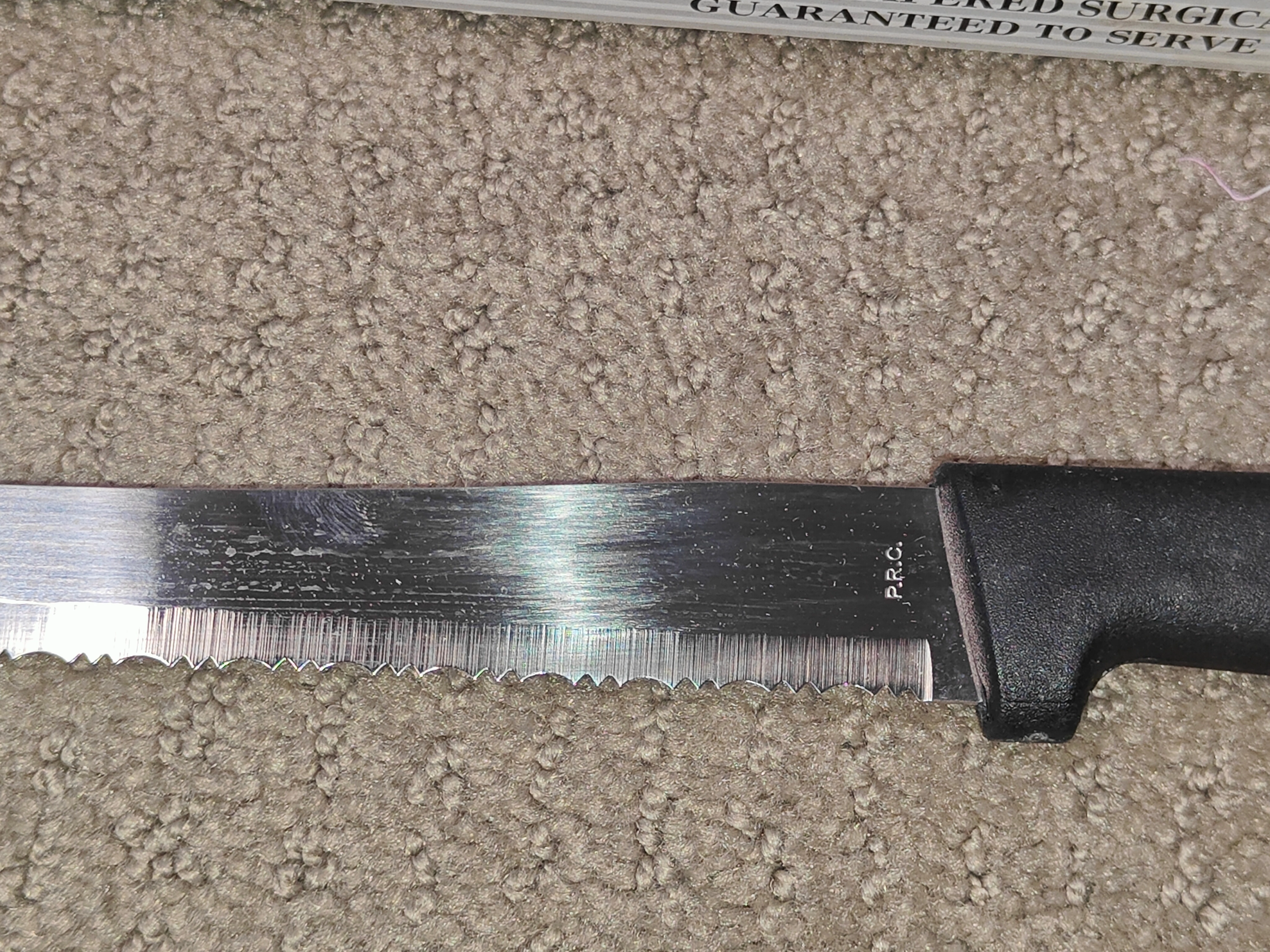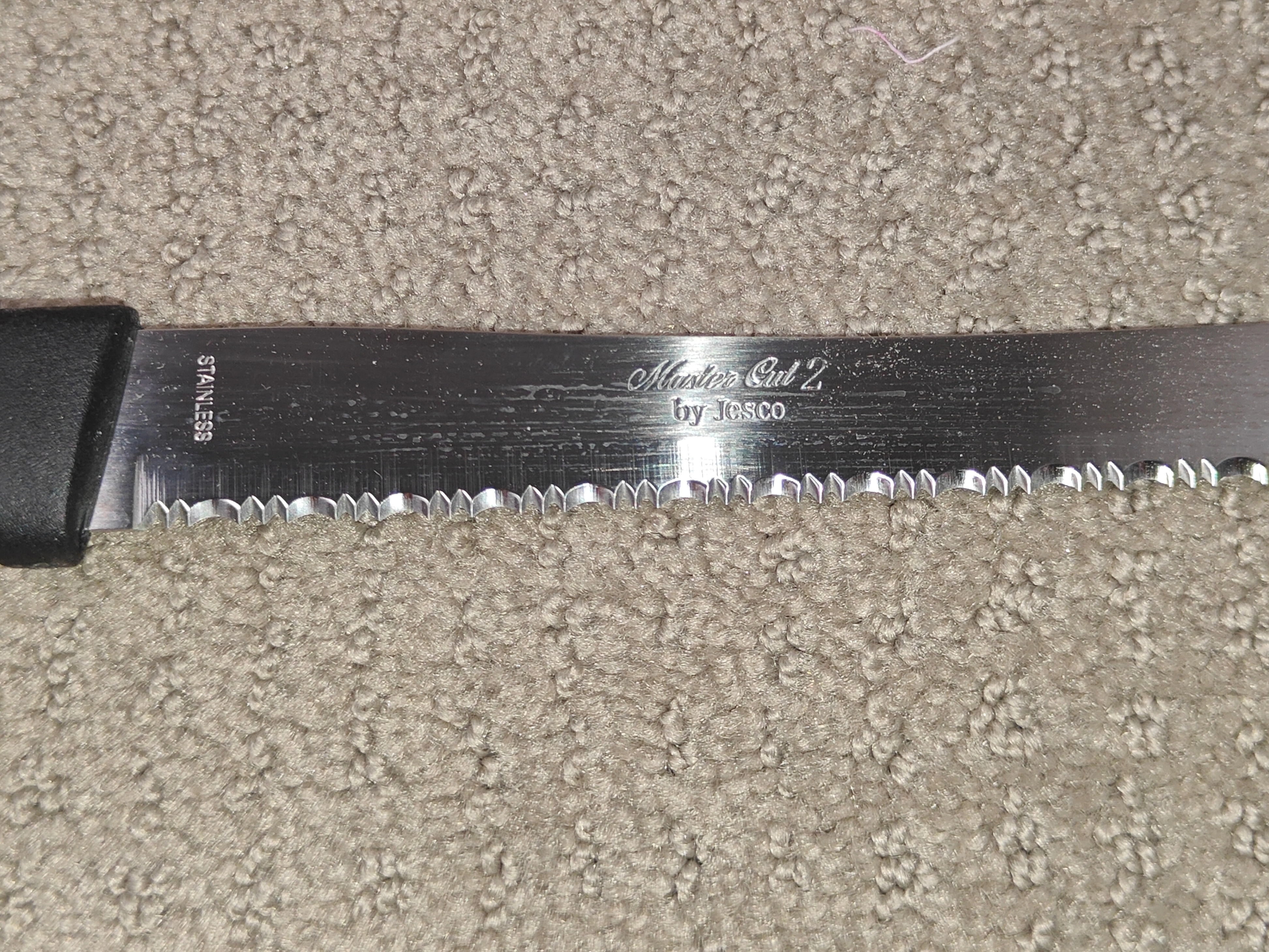 I am selling a Master Cut 2 Carve & Serve 8" Kitchen Knife by Jesco in used, good condition. Get a classic "carve & serve" knife with this Master Cut 2 by Jesco. This knife comes in its original packaging and is in good, used condition. Known for its serrated edge and triple-tempered surgical stainless steel, this is a versatile knife perfect for carving meats, slicing breads, and serving with the unique forked tip. This knife has an 8-inch blade and a total length of 13 inches, making it a great size for your kitchen. The blade is in solid shape with no issues, and the handle is comfortable and secure. Whether you're looking for a reliable carving knife for the holidays, a classic tool to add to your collection, or a sturdy knife for everyday use, this vintage Master Cut 2 is ready to go.