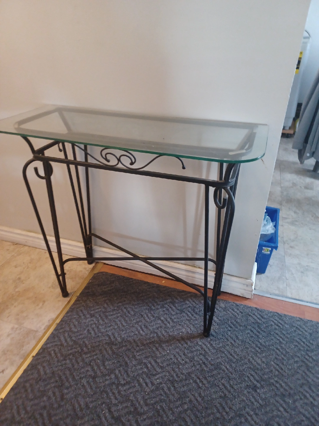 Selling a glass top console table with a black metal frame. It's in great shape and would look lovely in any entryway or living room! The table measures 32 inches long, 14 inches wide, and 30 inches high