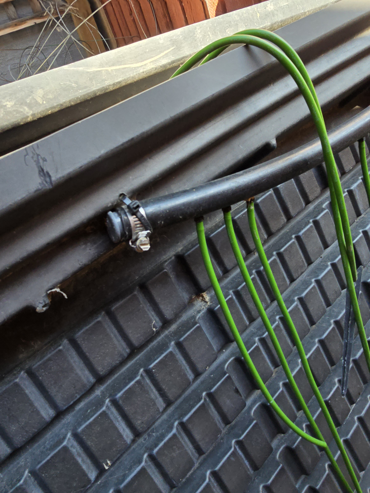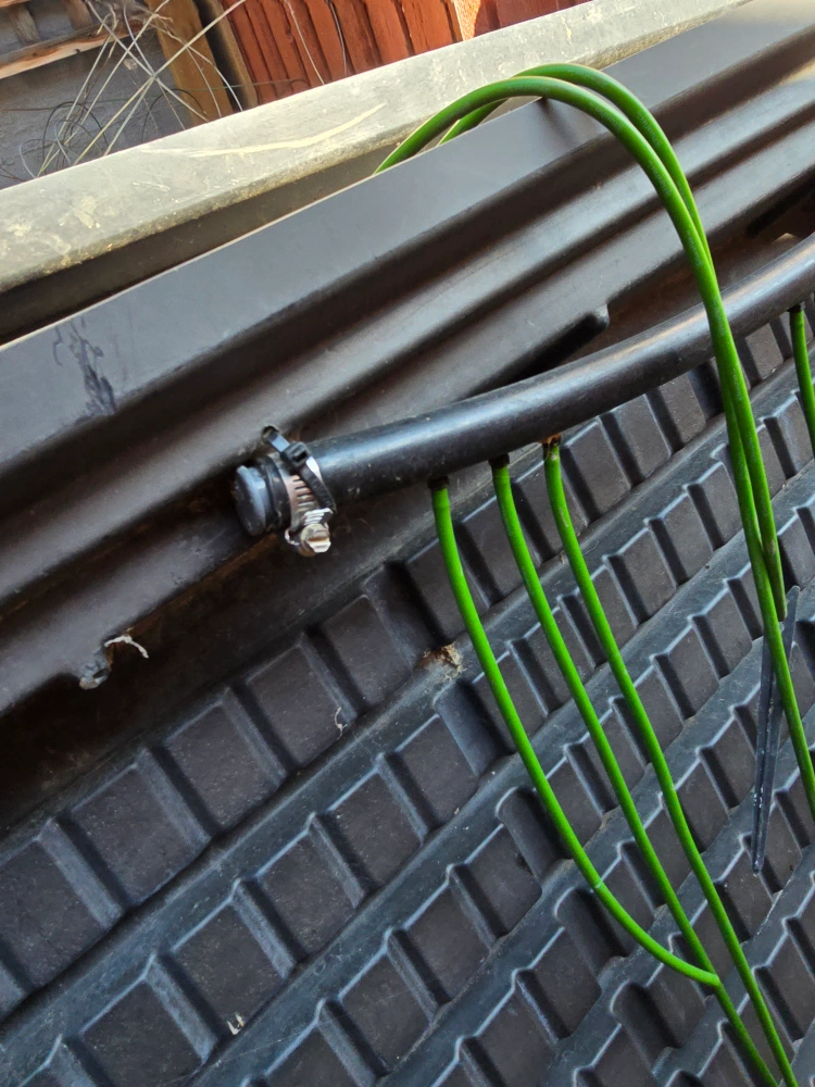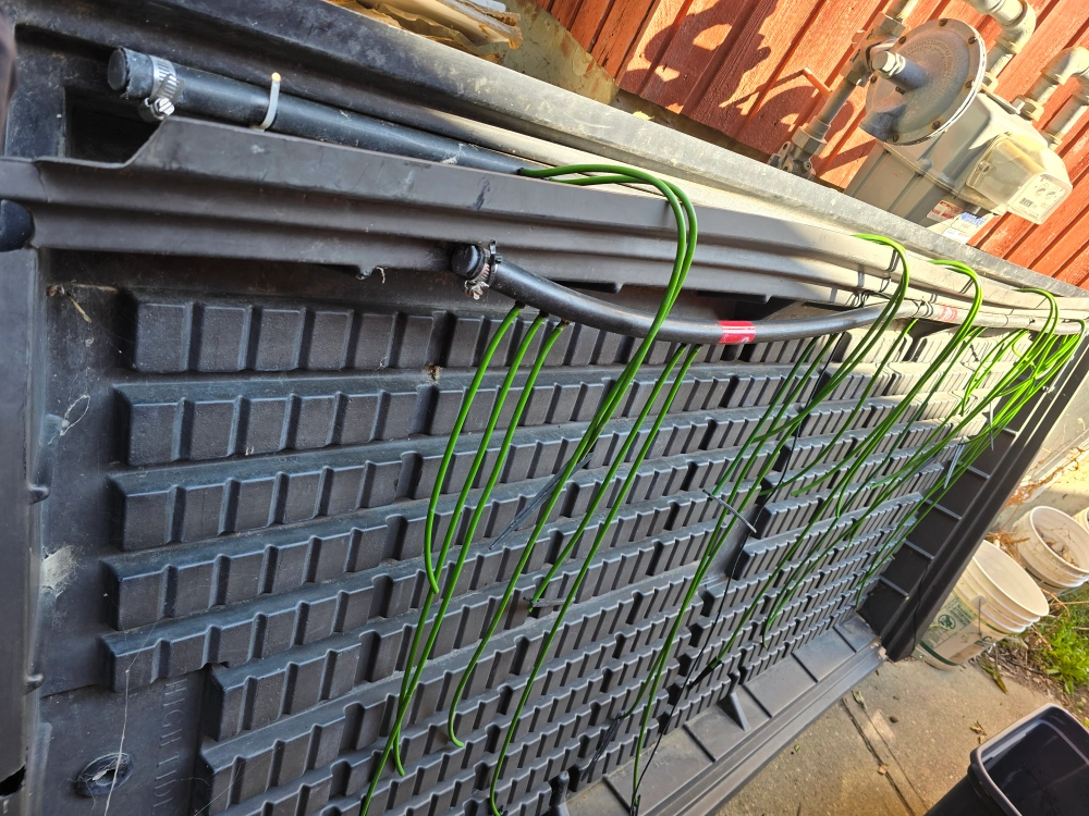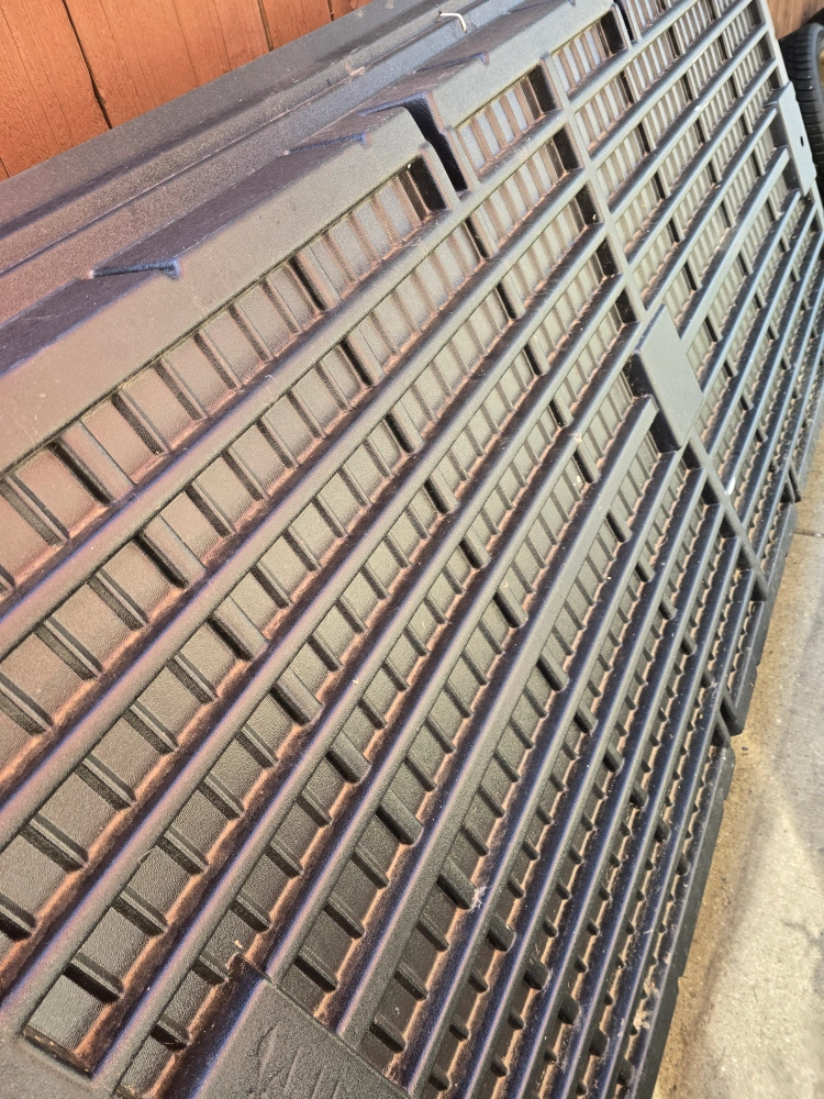 Selling 2 used growing bed liner that has an irrigation system installed. It's black and shows signs of wear, but is still functional. Perfect for gardening or other projects!