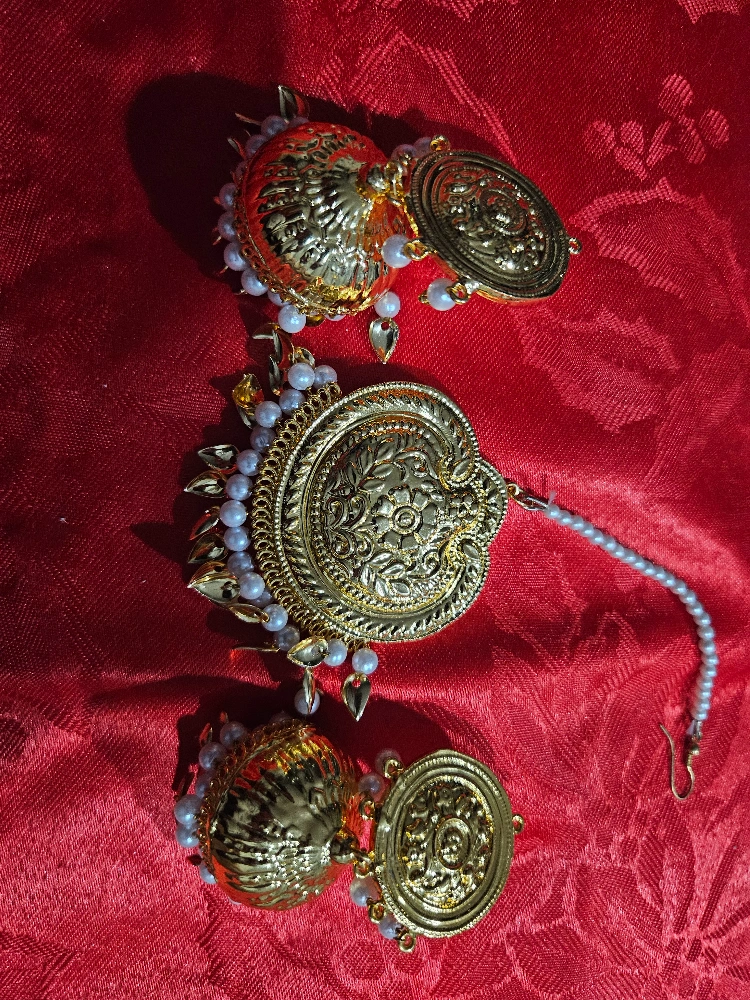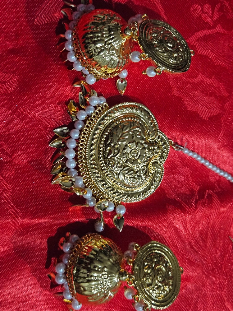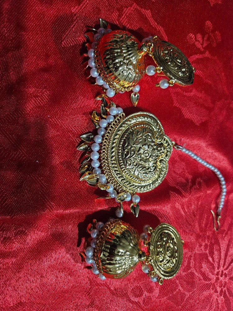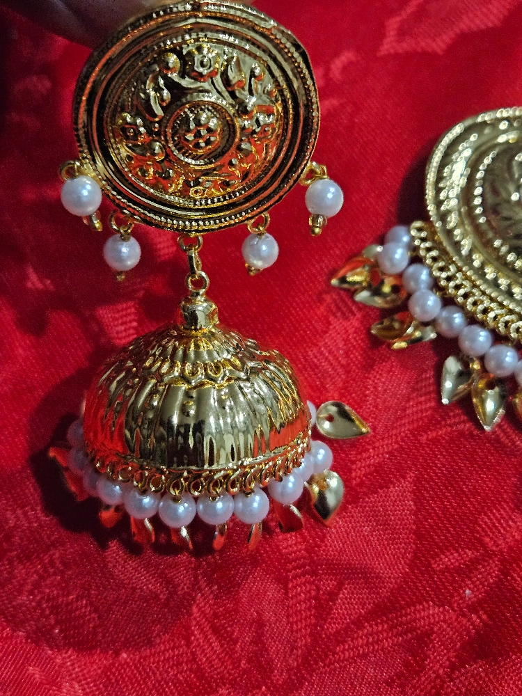 Beautiful gold jhumka earrings with pearl accents! These earrings are in great condition and would be a lovely addition to any outfit