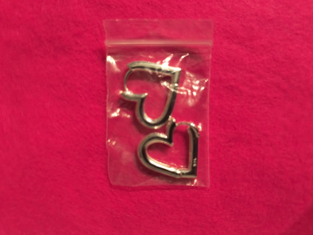 Here are some adorable heart-shaped earrings! They're a lovely silver colour and come in their original packaging