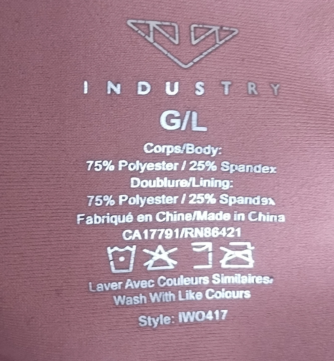 Selling a cute Industry bodysuit in a lovely pink colour. It's a size large and made of 75% polyester and 25% spandex. The back has a unique lace-up design. It's in great condition and ready for a new home! online sellers (photos 6-8) pricing ranges from $39-$79US.