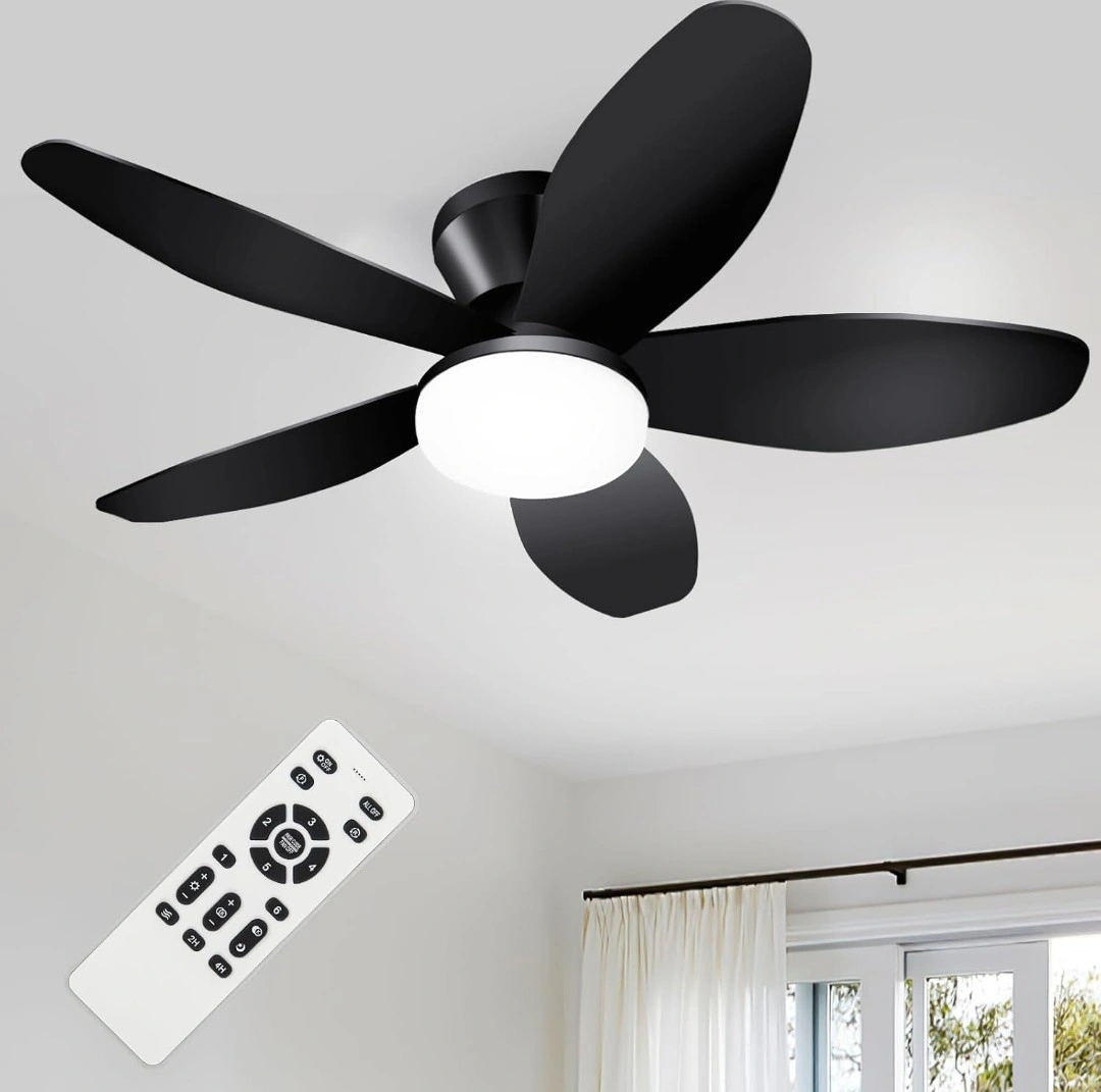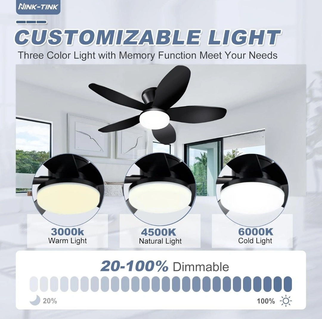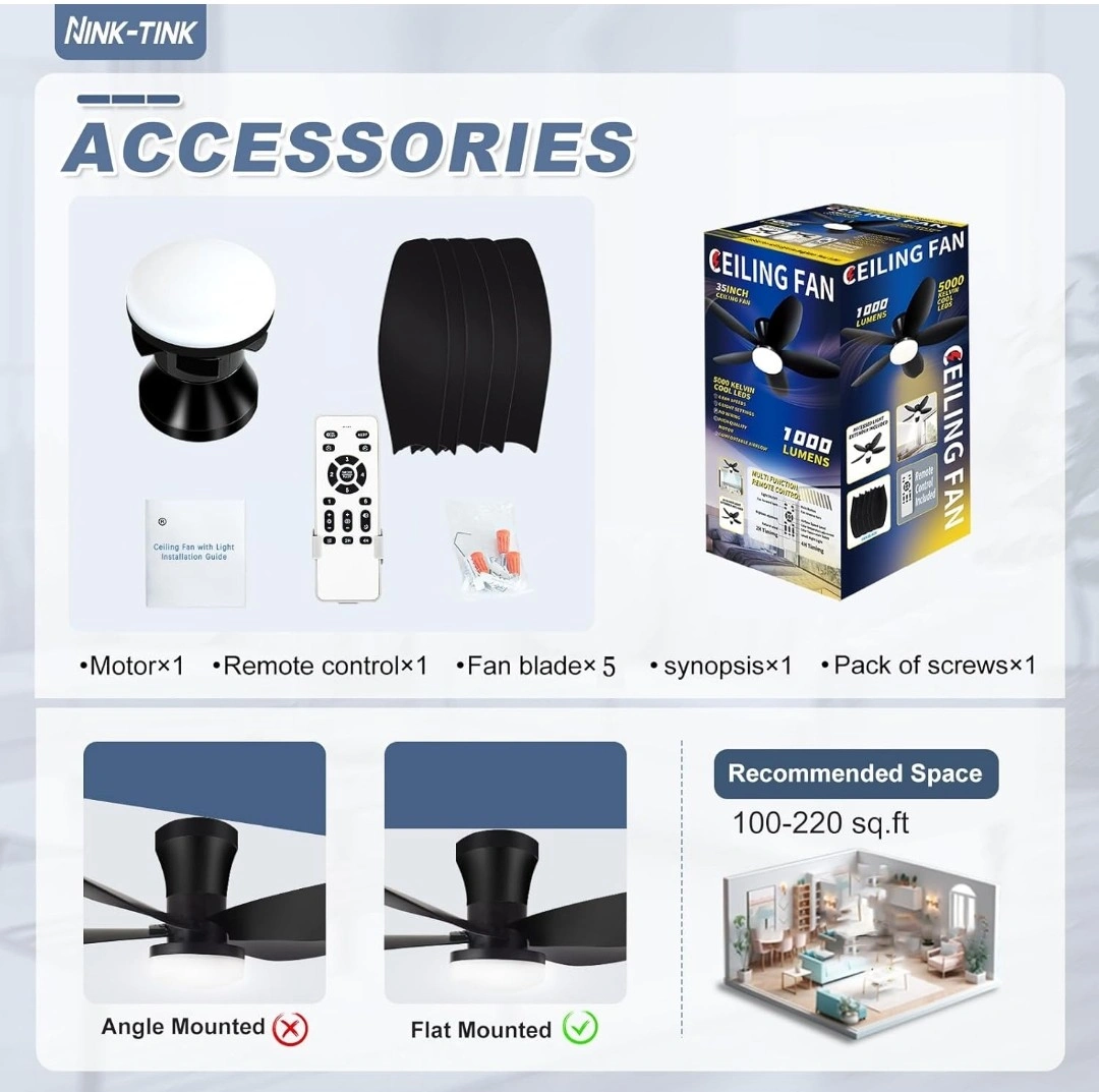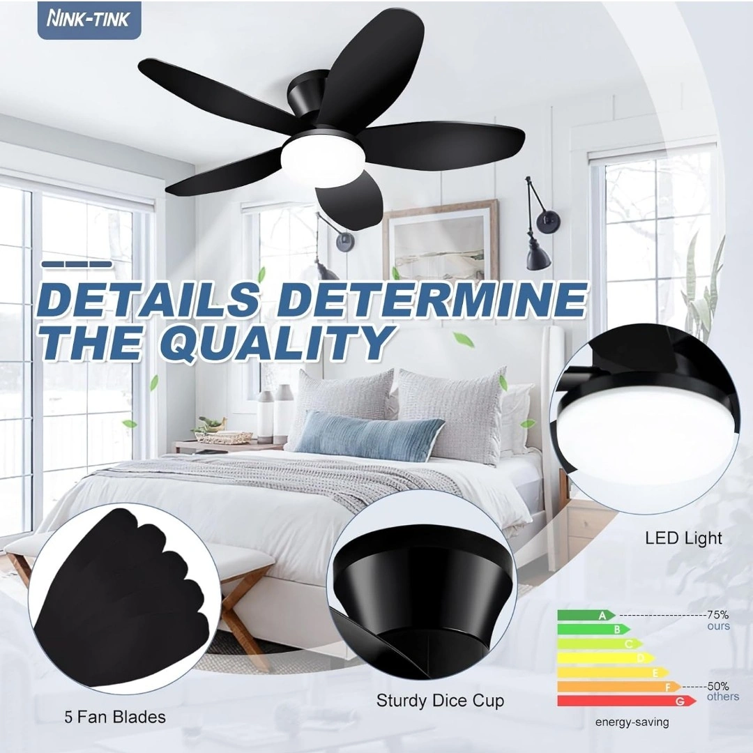 NINK-TINK Black Ceiling Fan with Light & Remote