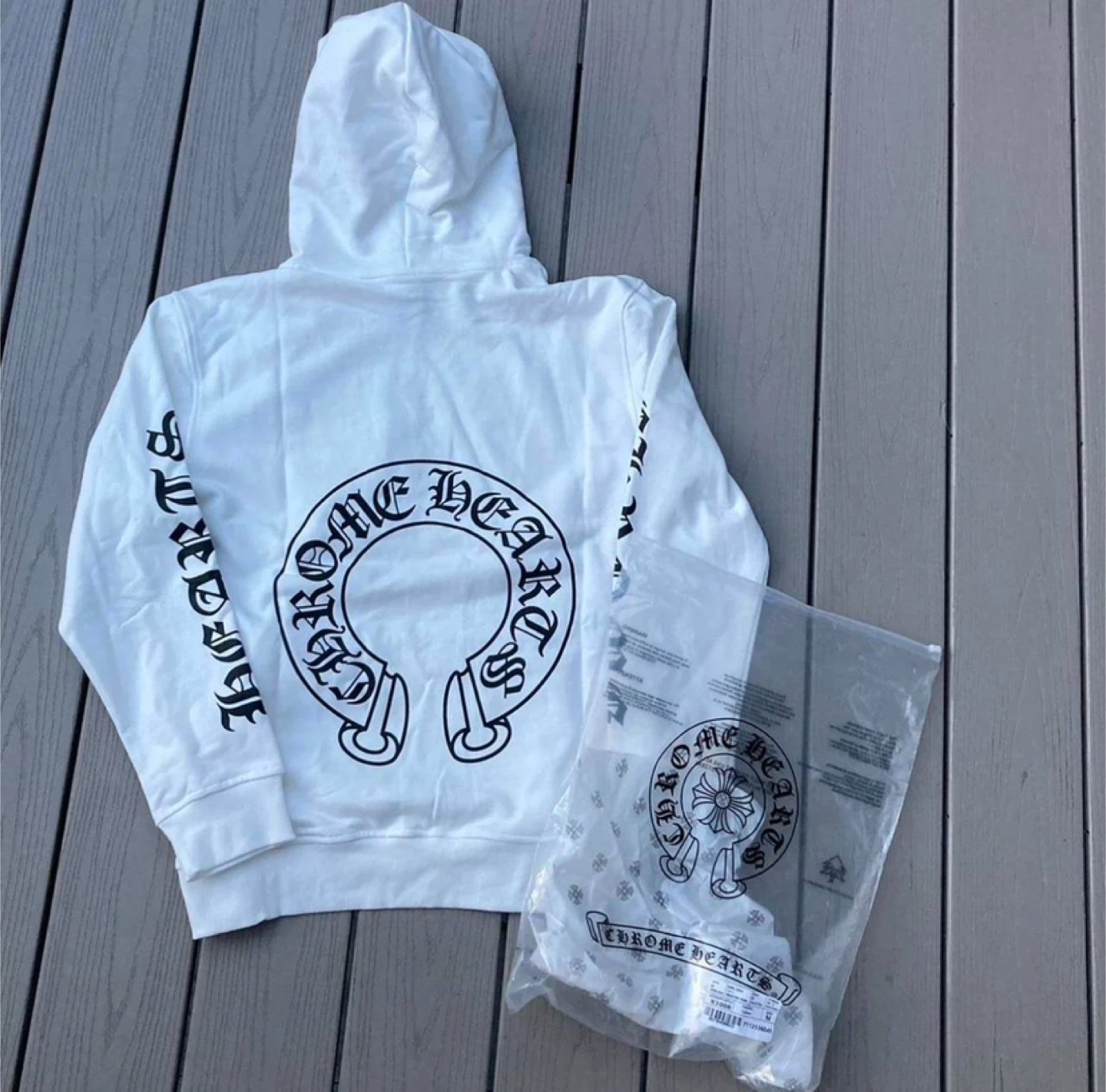 Chrome Hearts White Hoodie With Horseshoe & Lips Graphic – All Sizes