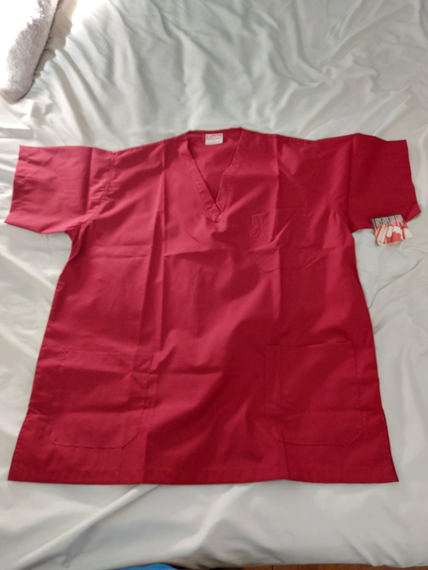 Selling a red scrub set including both the top and pants. Perfect for medical professionals or students. The set is in great condition and ready for a new home!
