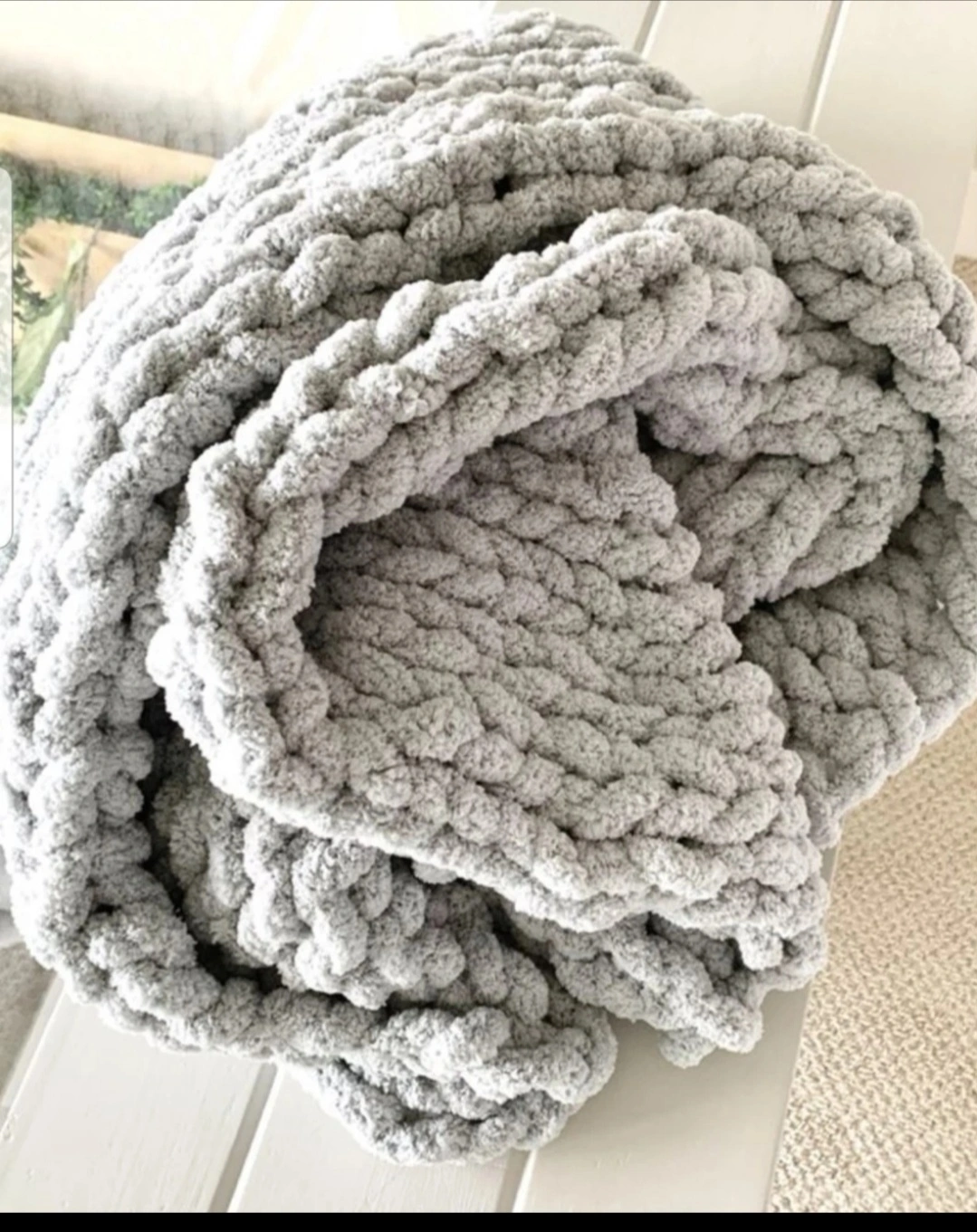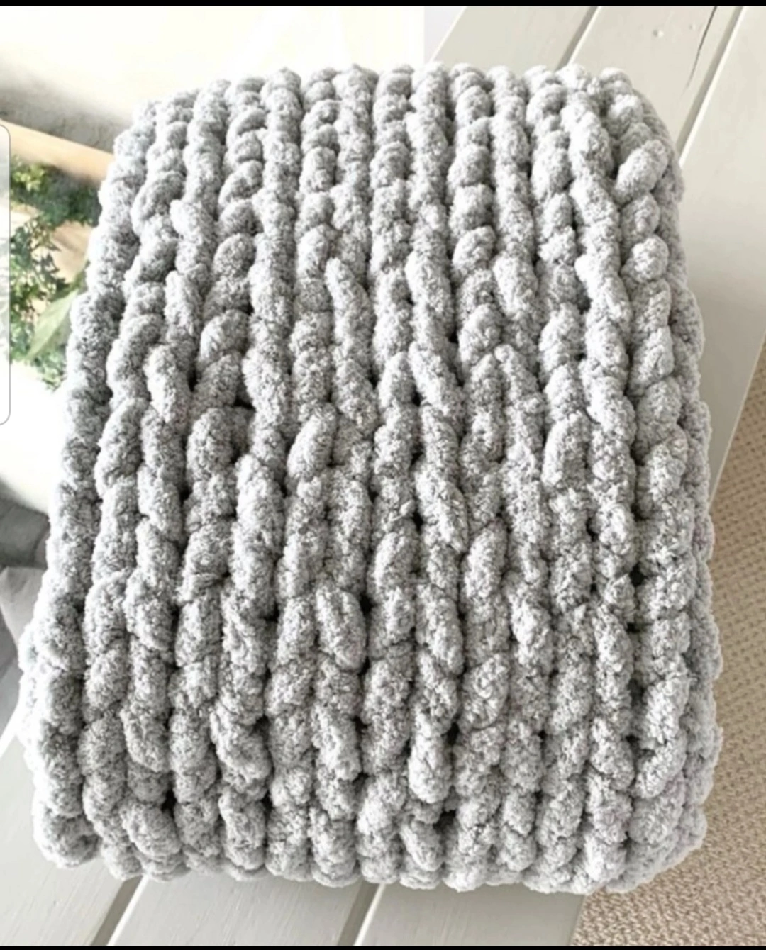 (I'm selling this UNUSED x-large because it is too big for my intentions. I also bought 3 other chenille chunky knit blankets from the same company in the smaller size in misty blue, vintage white, and pink which i use around my home. ALL ARE GORGEOUS FYI !! )