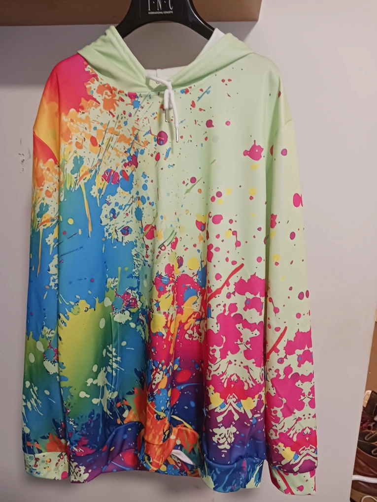 Selling a colourful hoodie and sweatpants set! The set features a light green base with vibrant paint splatter designs in pink, blue, yellow, and orange. Lightweight compared to most. Never worn! Perfect for adding a pop of colour to your wardrobe! Pick up only.