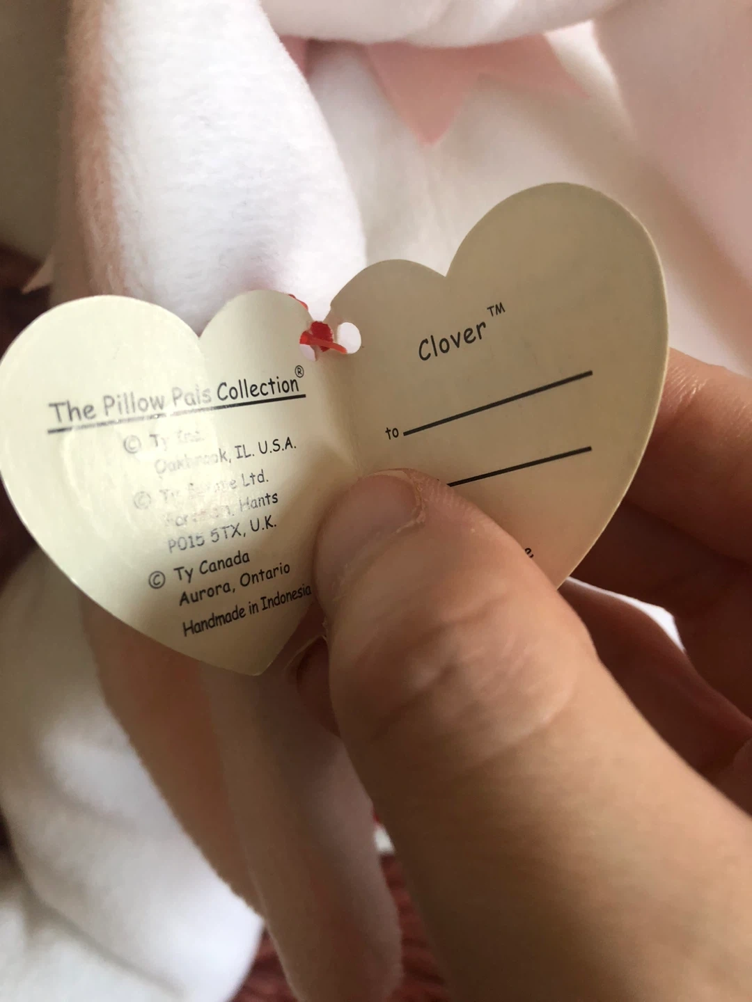 This is a 1997 TY Beanie Baby from the Pillow Pals Collection! It's a super cute white bunny named Clover. It's in great shape and ready for a new home