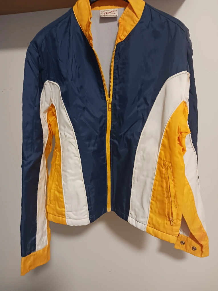 Selling a Nerypies Original Clothing jacket, vintage rain coat with cotton interior. The jacket features a unique colour block design with navy, white, and yellow. Great for adding a pop of colour to your wardrobe!